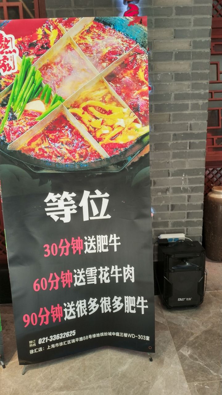 这家的牛油锅底感觉真的是蛮辣的,刚开始吃不觉得,越到后面越辣。 店里的座位还是蛮宽敞的,偶尔偶尔会要等座,上座率还属于比较高的,周末饭点时候会要等座。 菜的分量都很大,而且价格便宜,像土豆,只要四块钱,也有一大盘。像牛肉羊肉,一上来就是一大份,让人目瞪口呆。 调料着实一般,没什么心意,而且偏甜。 豆腐类制品不是非常好吃,譬如冻豆腐,不知道是用多嫩的豆腐冻的,完全没有get到冻豆腐那个点。还有炸豆皮,我的天,久煮都是那么硬。 服务还是可以的,冰淇淋还能吃吃,西瓜么续盘有点慢,还算是甜的。 偶尔可以吃吃,尤其是想拔草的店要排长龙的时候,性价比还是颇高的。