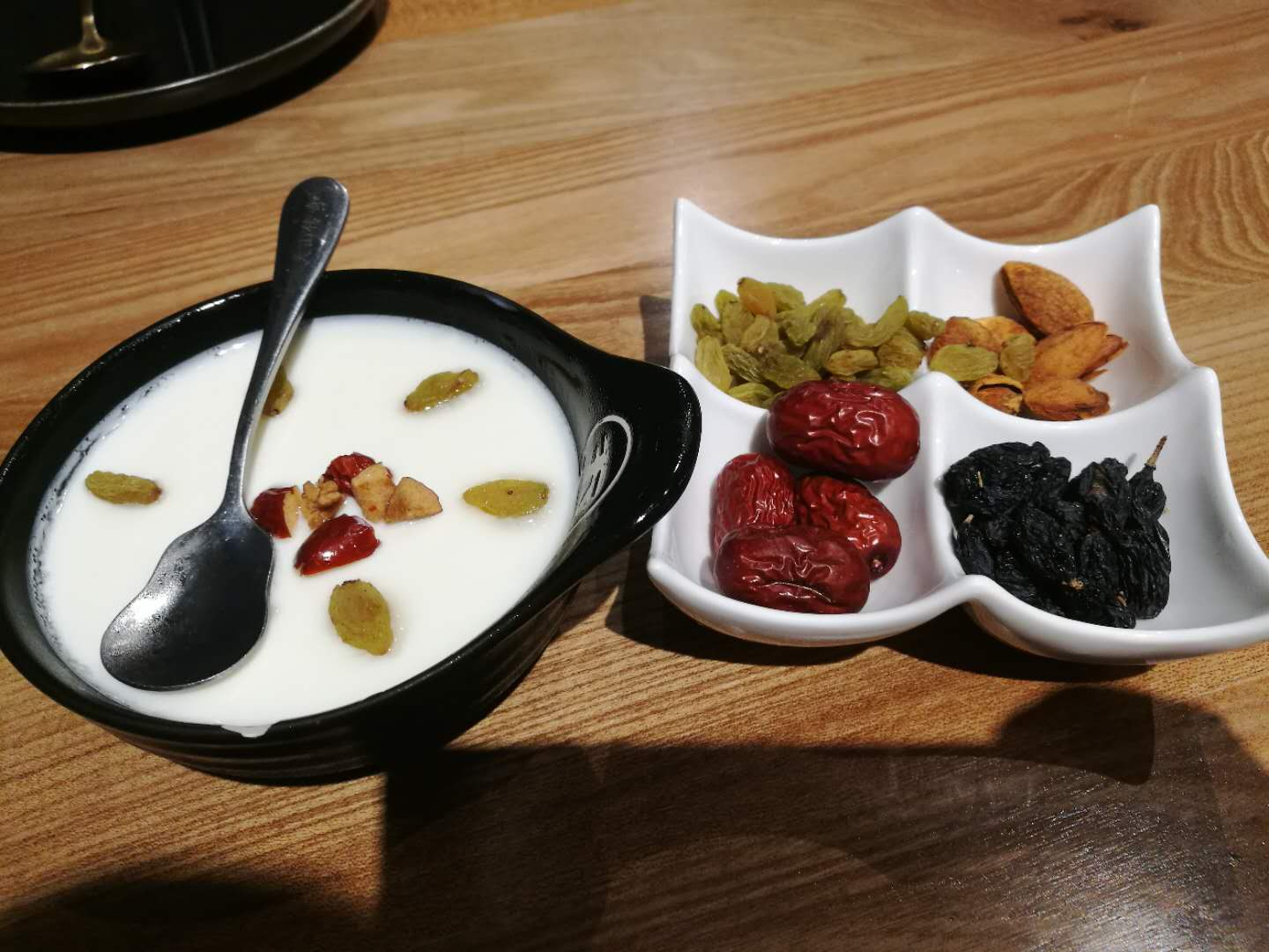 西域拿破仑,24元,超级好吃,一份有四块,很厚实,咬上去层次感很丰富,甜而不腻,绵柔细腻,奶香浓郁,很不错的甜品。 天山手工酸奶,10元,一碗大概够一到两人份,手工酸奶保留了酸奶原来味道无添加剂,比老酸奶稍微薄一点,口感细腻柔滑,洒了葡萄干和红枣碎粒,清爽开胃又解腻。