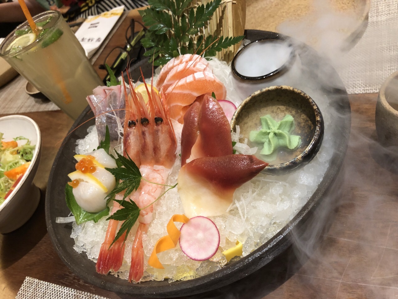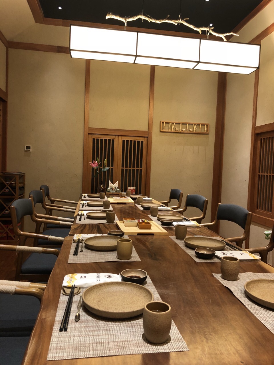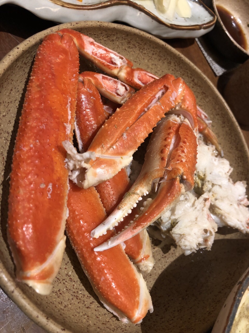 我竟然又来了,这次是部门经理聚会,所以没有榻榻米,而是很长的长条桌。服务一如既往的好,服务员不停的换盘子,每样菜都会好几份,不用搬来搬去。这里不仅适合朋友小聚,还适合大聚会。由于蟹是活的现杀,最好吃的就是刺身蟹腿和火锅白灼蟹,实在太赞了。还有生蚝和螺也不错。对了,牛舌也很好。总之好多好多好吃的,大家纷纷拍照,啧啧称赞!我简直就是常客啊。