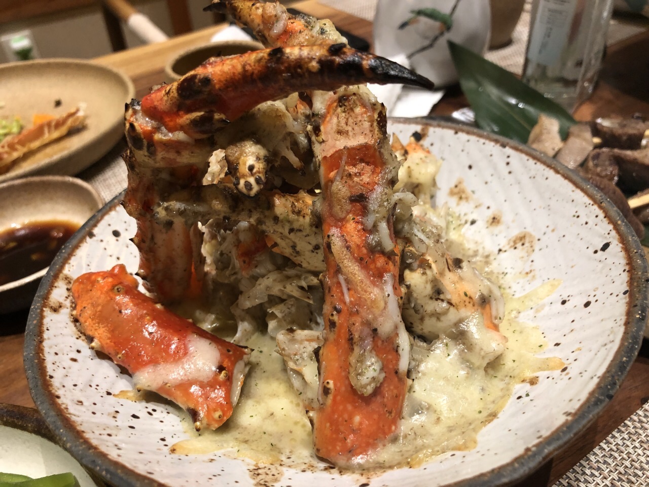 由于蟹是活的现杀,最好吃的就是刺身蟹腿和火锅白灼蟹,实在太赞了。对了,牛舌也很好。还有生蚝和螺也不错