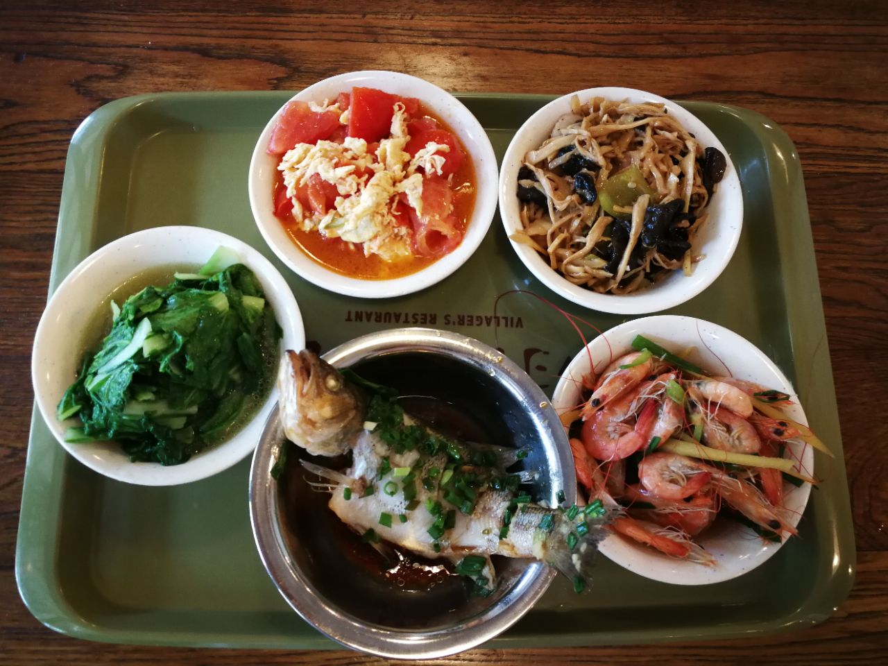 村民食堂在良渚文化村的名气很大呀,周末早上到这里差不多九点,看到很多人排队,原来都是来吃早饭的,队伍已排至室外了,放弃直接中午来吃了一次,早早的等开始,这里价格很实惠,以自助形式取餐放餐盘,都要靠自己自觉哦,食堂内环境还是蛮干净的,鱼虾都很新鲜,就是感觉中午品种少了点。不过来到良渚还是要体验下最具情怀的食堂菜。
