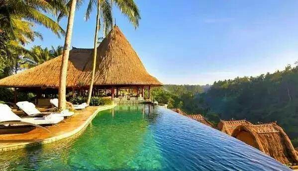 [cp]世界上最美游泳池之一---巴厘岛乌布空中花园酒店[好爱哦][好爱哦] 世界上最棒的泳池”,在泳池里可以直面巴厘岛最美的丛林和神秘的庙宇。这个无边泳池,它就坐落在巴厘岛的乌布空中花园酒店。一部《美食、祈祷和恋爱》(Eat Pray Love)让巴厘岛的乌布成为相当热门的旅行目的地,金黄的稻田、翠绿的山林和壮阔的大海都让旅行者们心向往之,而乌布空中花园酒店也正是片中两位主角茱莉亚?罗伯茨和哈维尔?巴登的下榻之地,或许很多人正是因此慕名而来。因为酒店处于山中,所以进出都需要依靠索道来完成,这估计是很多人住过的第一家需要靠索道当交通工具的酒店吧