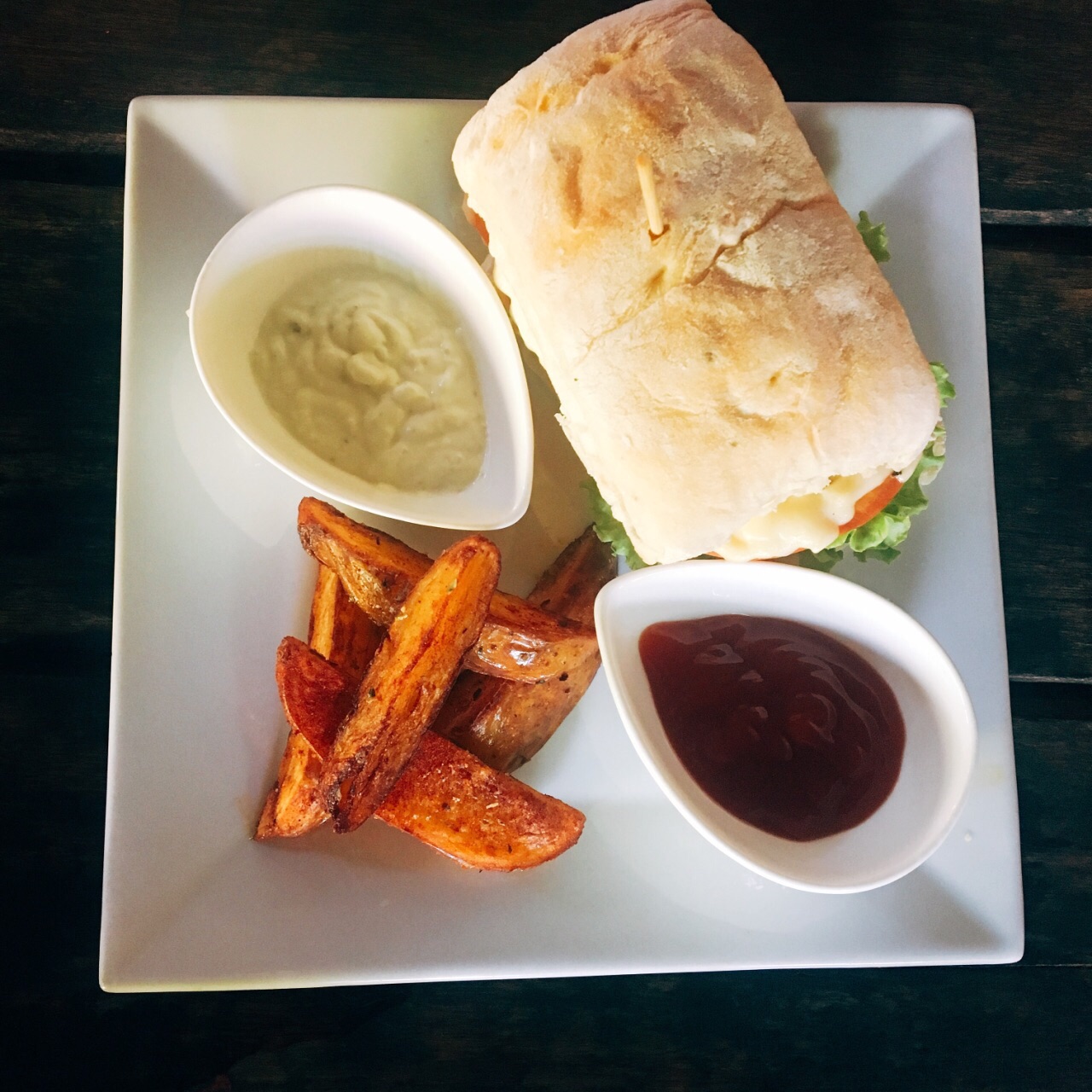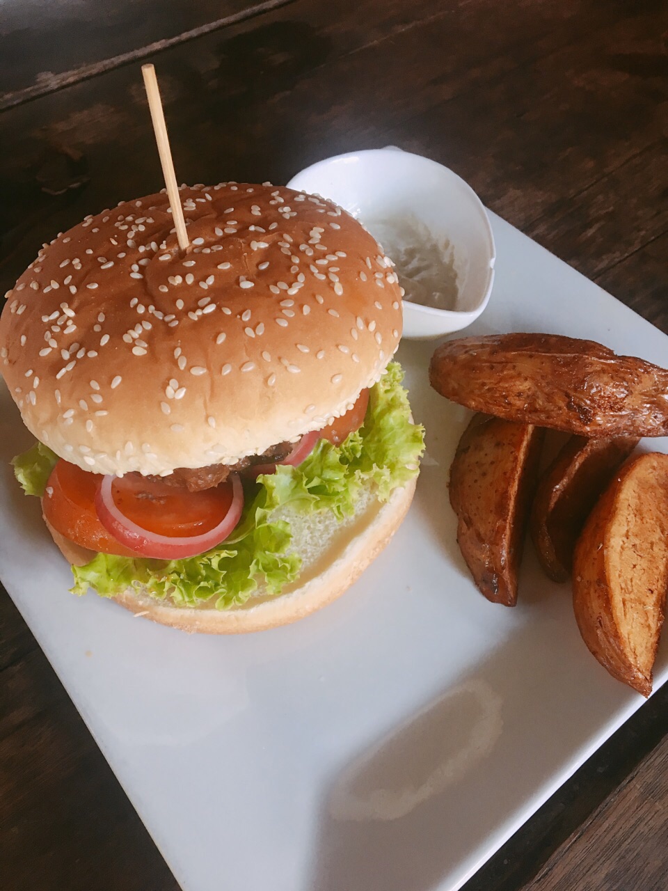 好吃!炸的薯条也是超级推荐的!有点点偏,在一个小巷子里面有点点偏,在一个小巷子里面。没有中文菜单和中文服务,瞎点的……环境就是很简单的,虽然没有空调但也不觉得很热,东西味道真的很不错,汉堡的肉超级大!炸的薯条也是超级推荐的!好吃!