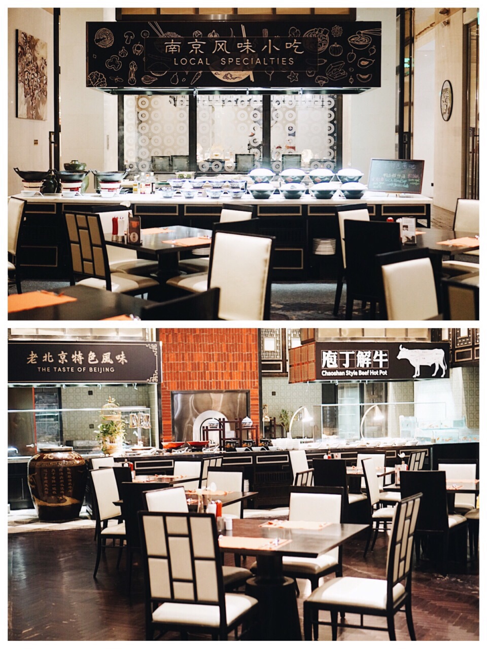 时隔许久又见橘暮 总统府旁低调的存在,进门有身着民国服装的门童微笑迎接。大堂吧藏身在巨大的书架中,空气中弥漫着文化的气息。 坐电梯来到负一楼,橘暮餐厅便在眼前。餐厅进深宽阔,南京小吃区,西餐区,日料区,沙拉区,面包区,甜品区,烧烤区等等分门别类任君选择。 中午过去人不会特别多,非常安静。 个人比较喜欢烤牛排,快开餐的时候厨师就已经开始烤制了,肉比较香,咸淡适中。 甜品也值得称道,喜欢巧克力慕斯,巧克力味道非常醇厚。冰淇淋口味也好,可以自己加配料。 三文鱼北极贝刺身等比较新鲜,还有很多海鲜可以大快朵颐!