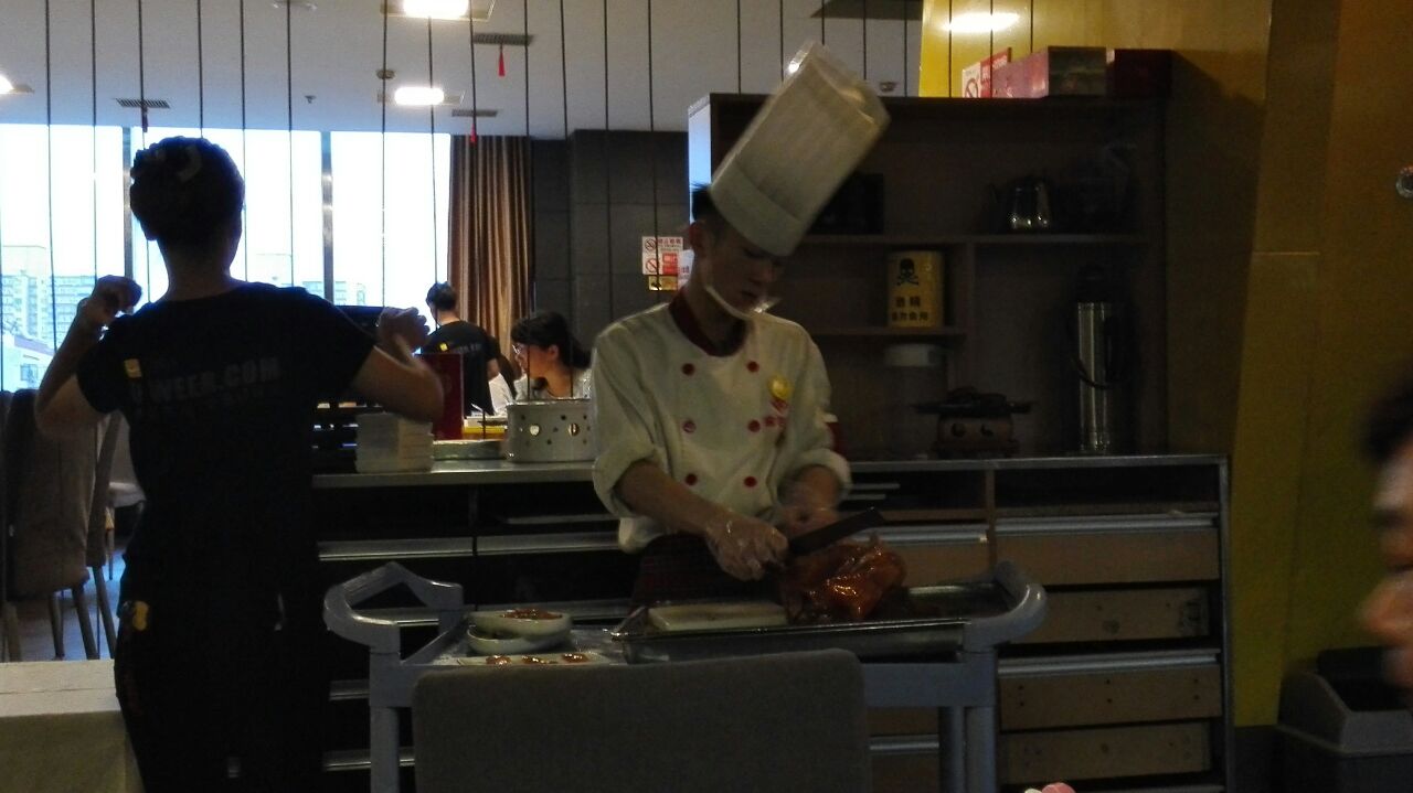 交通便利,紧邻地铁角门西站。饭店大厅挺大,包间也很多,装修比较讲究,但是菜价并没有因此而死贵,属于工薪消费。烤鸭会推到你桌边现片,盛料的容器很有特色,令人眼前一亮。就是感觉鸭肉量有点少。总体来说还是一家性价比很高的饭店,以后有机会还会去!