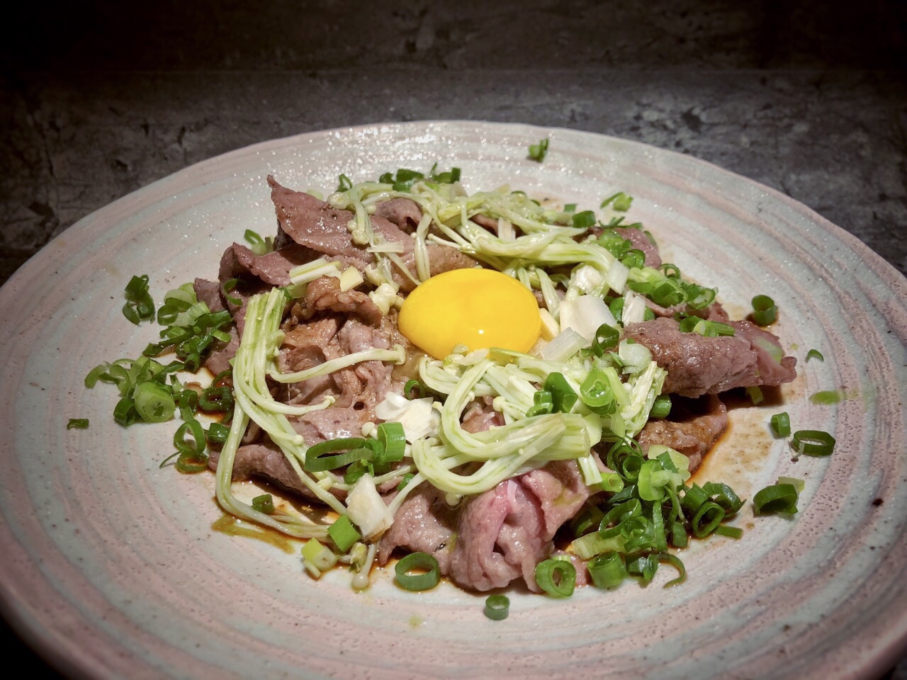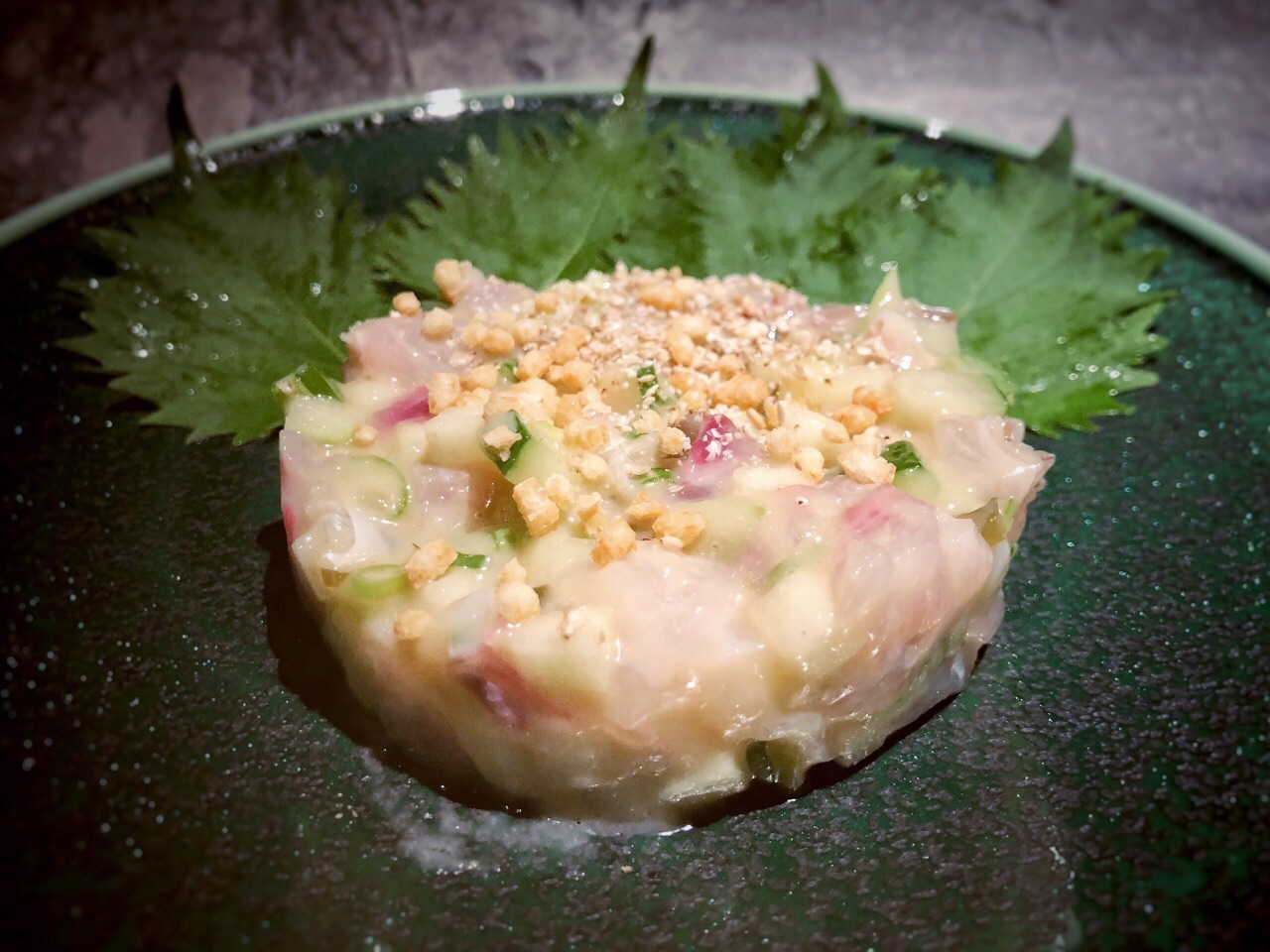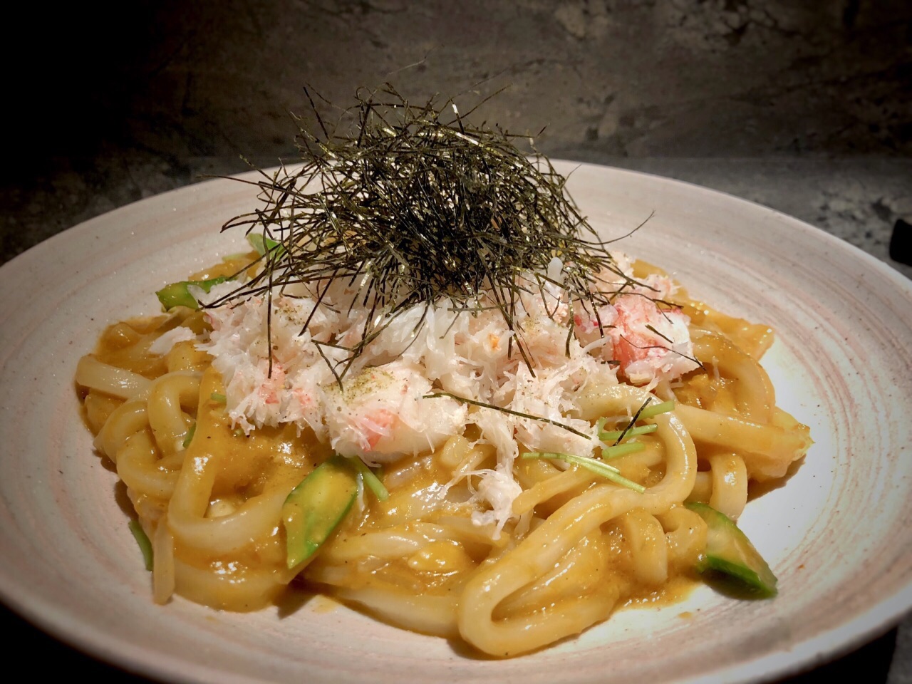 Fukuro是收藏很久的餐厅,最初在Ins上看到一张乌冬面的照片,甚为诱人,立马将餐厅收藏起来。 周末来的比较早,进门直接有座位,餐厅不大,氛围很好,随意又有活力。 Japanese omelette,日式蛋卷配白萝卜泥加三文鱼籽,口感很清凉适合夏天。个人觉得这三种食材不是很搭配,蛋卷(凉的)的甜、鱼籽的咸、萝卜泥的爽口,加上三种不同的质地口感,似乎不是很和谐。 Crispy Caramel Butter Corn看名字就知道味道不会错的一道菜。作为深爱炸玉米、焦糖、和黄油的我来讲,这是必点的菜。如果说缺点的话,就是外面的焦糖炸成了一层糖衣,吃起来和玉米会有脱节的感觉,但是总体还是推荐的。 Prawn Tempura搭配aonori(青海苔碎)和spicy mayo,天府罗的外衣比较厚,但是味道没得挑剔。 Market fish tartare with yuzu kosho (柚子胡椒),用紫苏叶包裹吃,味道还不错。 A4 Wagyu Sukiyaki 搭配蛋黄、葱随、金针菇。味道和食材搭配没问题,A4 Wagyu牛肉的质感不是很好,有好几口不知道是肉筋还是什么,完全咬不烂。我个人一看到AX wagyu,期待的总是软绵绵口感的牛肉,所以有点低于预期。 Yaki Udon搭配雪蟹肉和crab miso butter。 当初就是被这道菜吸引而来,果然没有让人失望。蟹肉给的量很充足,酱汁味道绵密浓郁,这道乌冬面我给满分! 最后一人一个Monaka ice cream sandwich,样子可爱味道好吃,甜而不腻。 这里的cocktail、sake的选择不少,餐厅氛围也十分适合小酌一杯,由于当天有事所以我只点了一杯highball。下次来一定多点几杯。 fukuro给我的感觉是“高端新派居酒屋”,食物从创新到味道已经非常不错了,虽然也有一两道我不是特别喜欢或者觉得一般的,但是总体的餐厅气氛和用餐体验我都十分喜欢,下次绝对会再来。推荐!