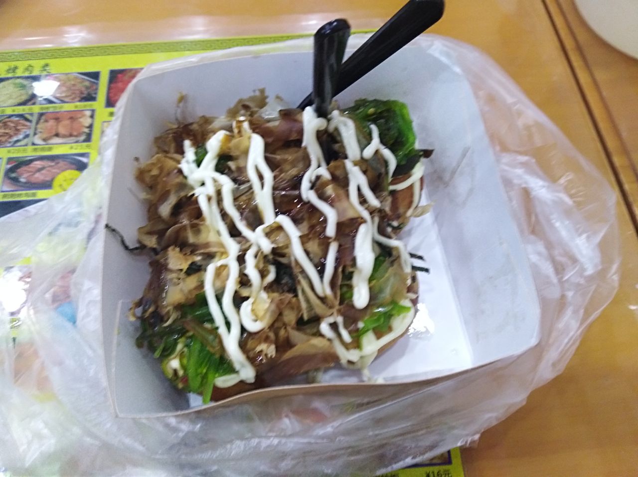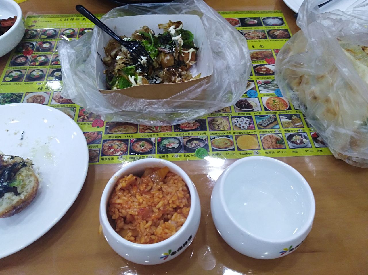 跟朋友进来尝尝,没来得及拍很多照片,外面就是江大后街,买了很多小吃,推荐章鱼烧和烤面筋,菜煎饼还行,这家店,她们点的是全州拌饭和五花肉泡菜拌饭,味道还可以,店家一上来就上了海带咸菜,还有一壶水,餐具也齐全,服务态度还不错
