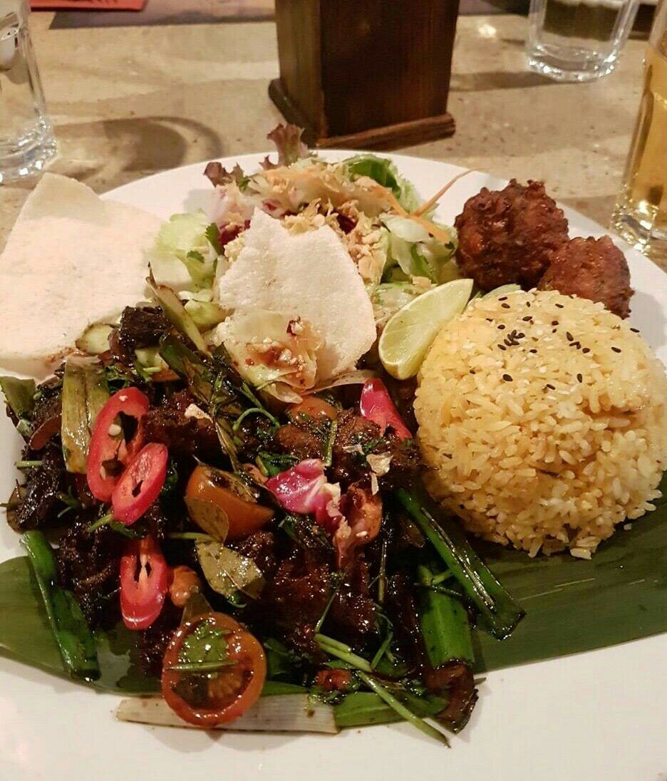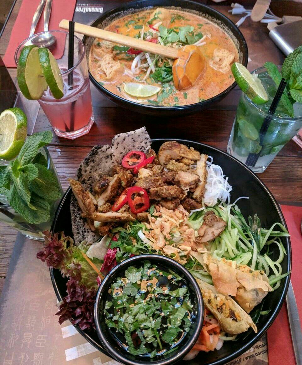 #Banana Tree Oxford# 牛津的这家香蕉树餐厅主打亚洲美食,但个人认为偏向于东南亚菜,味道很正宗,分量太足,三个孩子点了三道菜摆了一桌子吃不完打包[污]。位置也很好找从火车站下车直走过了桥后市中心路边。