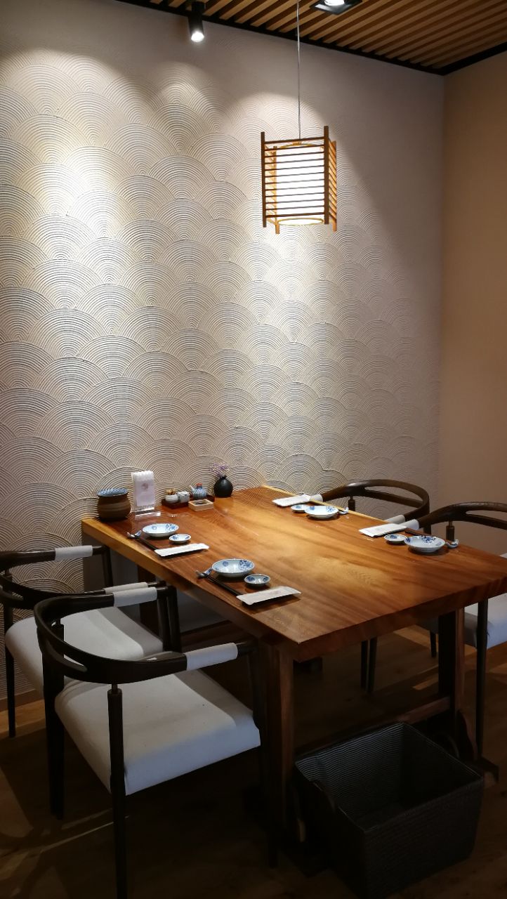 第二次来,换了个包房,一样的干净整洁,就是年纪大的坐下来有点吃力。洗手间很清爽,有专门的吐呕池,清洁用品也很别致,典型的日式风格。听说这家老板原来是专做日料进口的,现在自己开一家,食品的品质应该更有保障,新鲜。包房这一侧还陈列着店家收藏的日式瓷具,挺是漂亮。这次全方面尝试了一下,三文鱼刺身和香烧牛肉最受欢迎,也去里面各个房间转了转,似乎还是包房最舒适