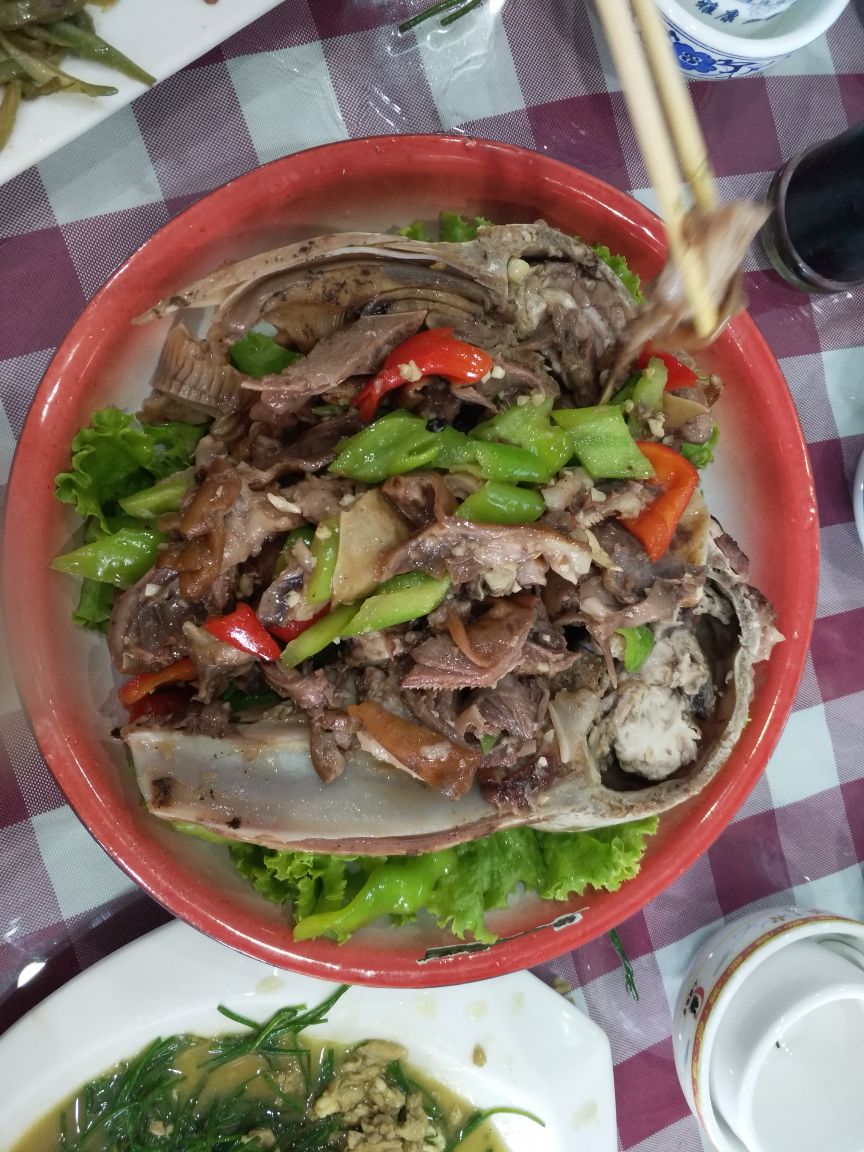 从草原天路下来吃的,我们点了野沙葱炒鸡蛋、羊头捣蒜、莜面饨饨、山药鱼、莜面鱼鱼,都非常美味,尤其最爱莜面饨饨,光顾吃了,莜面饨饨没拍图。另外,其它桌子都点了手把肉,看样子很香!我们一家饭量小,怕吃不了没点,他们家菜量大,我们最后还是没吃完。