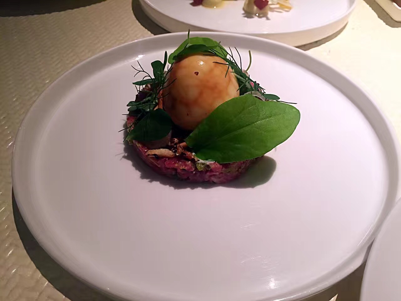 生牛肉塔塔 和在JR家吃到的口感相似,唯一美中不足的是溏心蛋~ 香煎鹅肝 脂肪豆腐的口感~是太多了