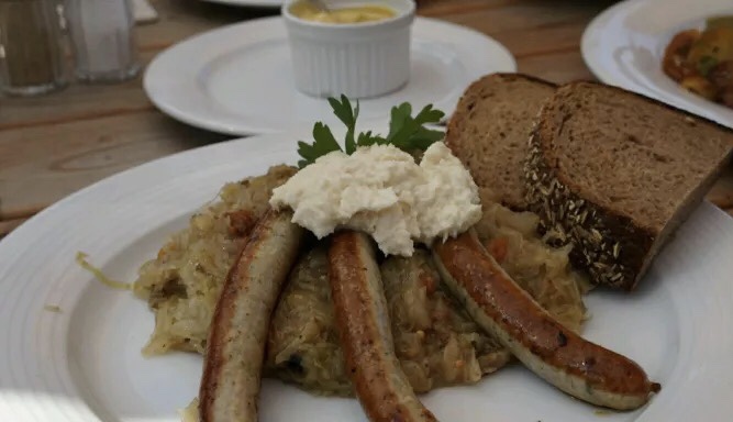 Good location and nice view.The local beer called Radeberger is great,while taste of crispy half knuckle of pork is not that impressive. 推荐:猪肘 这家饭店就像一艘船靠在河边,甲板上位置最佳,视野 好还可以吹吹风。猪肘、香肠也是不错,他家也有自酿 啤酒,值得一试。