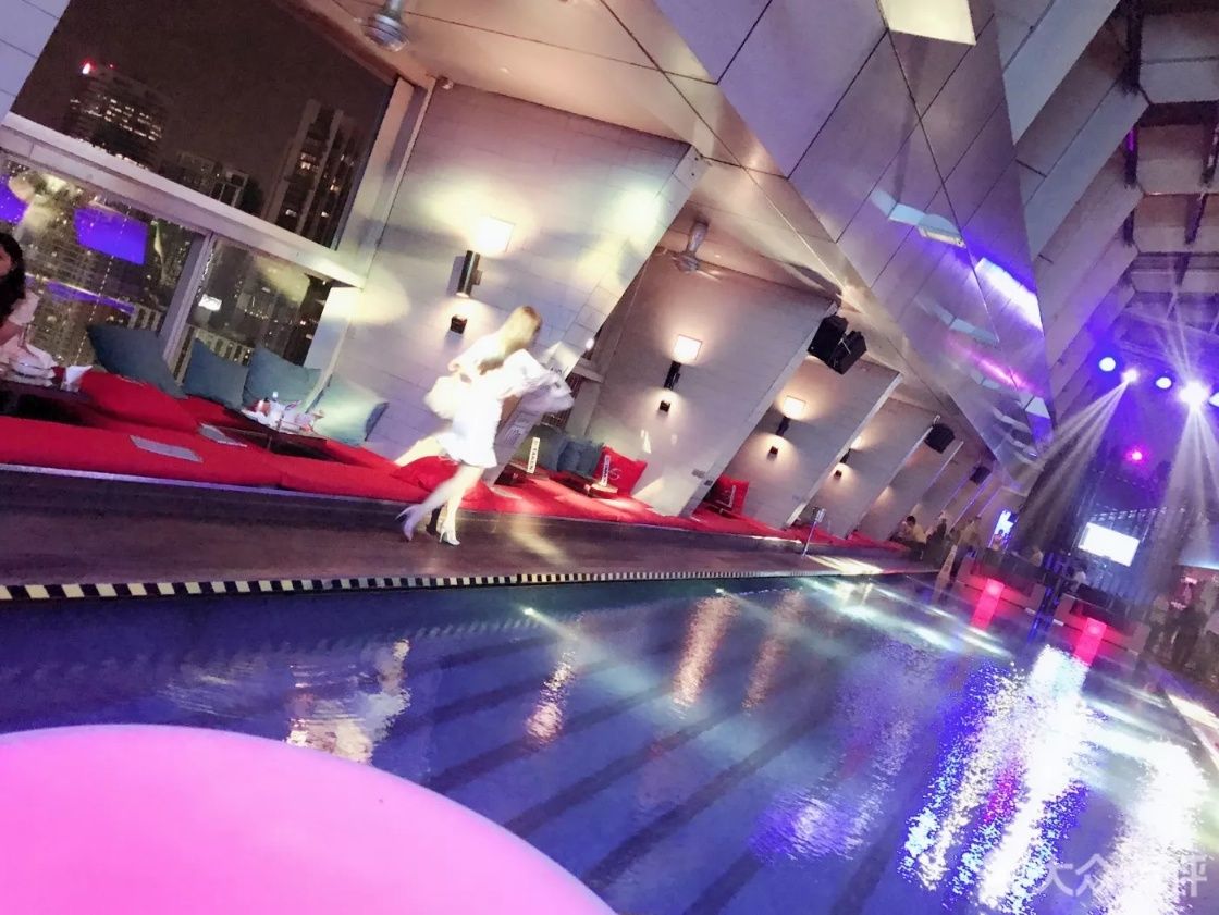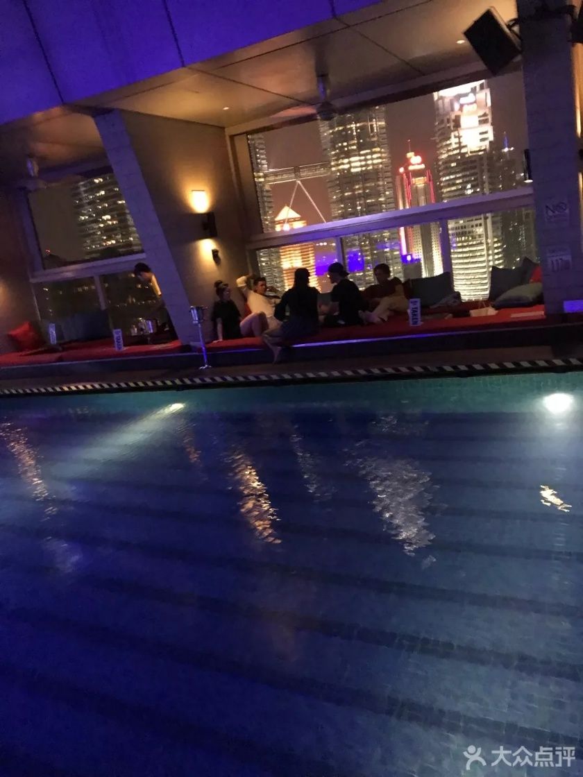 Sky Bar 地址: 联邦直辖区商贸酒店33层 在TRADE HOTEL的33楼 入场之前是要过安检的 就像进地铁站一样 里面的环境灯光比较昏暗 确确实实是一家酒吧的气氛 一排靠窗的座位 都是欣赏石油双子塔的最佳位置 但服务员告诉我们必须是酒店的住客才能预定靠窗的位置 无奈之下只能坐在中间的位置 酒吧的中间是一个大泳池 但当晚没有人在泳池里玩 据说平时气氛高涨的时候会有人在泳池里玩耍 去sky bar大多数人都是为了去看双子塔,因为酒吧对面就能清楚的看到,视觉感非常棒。 点了两杯果味酒,都是招牌。具体名字忘了。后劲挺大的。 服务员不会说国语 点酒的时候必须全英文 消费小贵