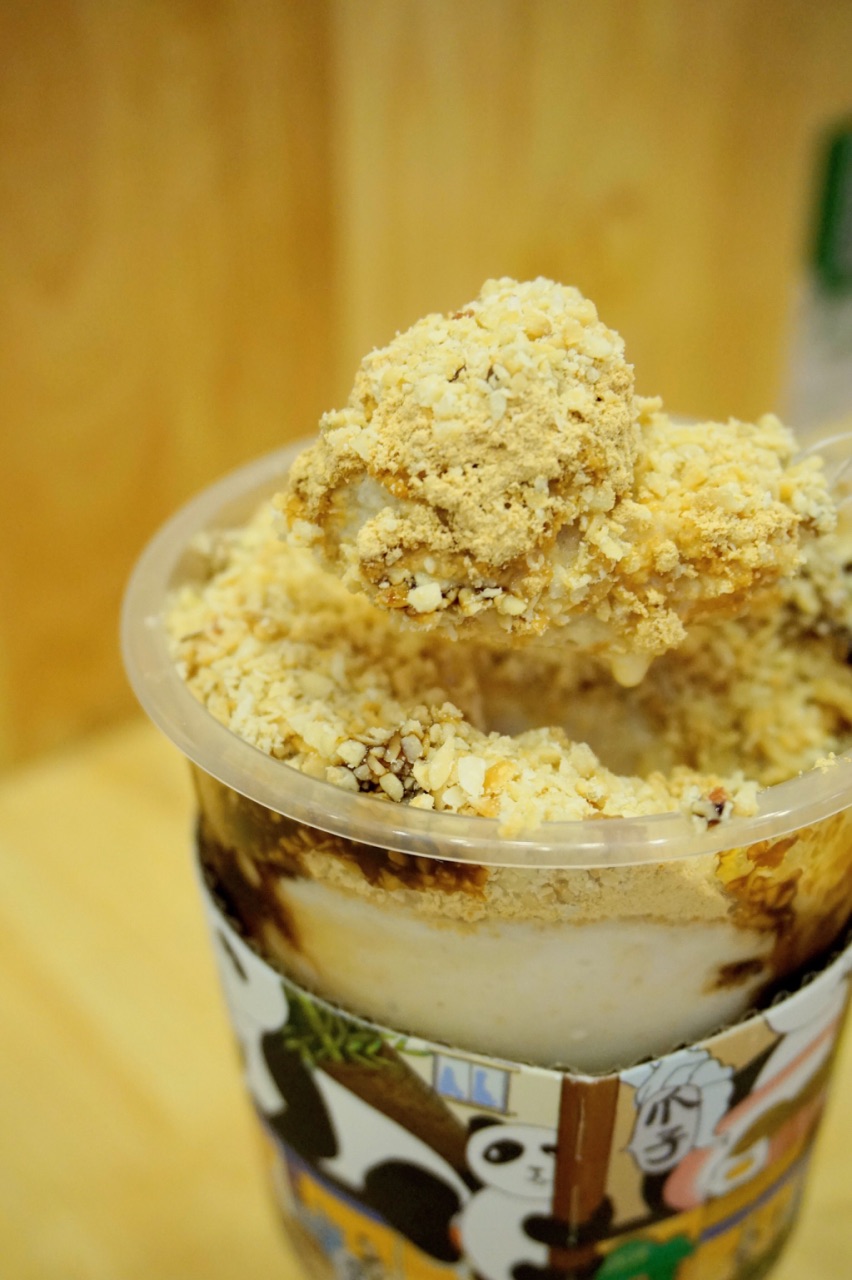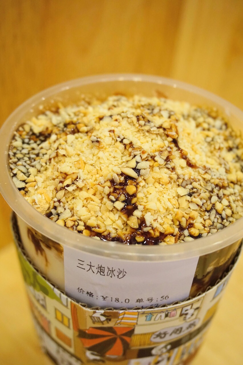 我先点了一个我们都很感兴趣的【三大炮】18,满满的花生冰沙,冰沙很细腻,每一口都能吃到花生碎...