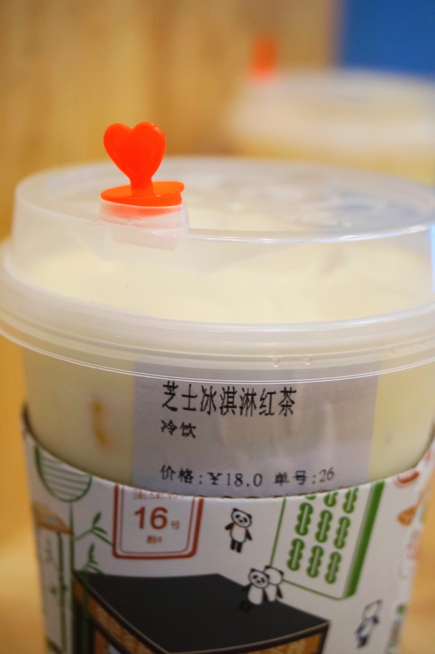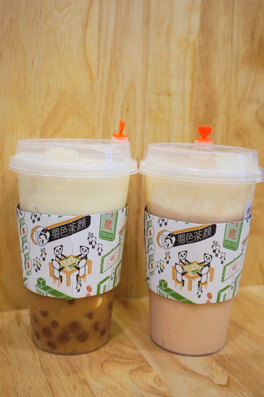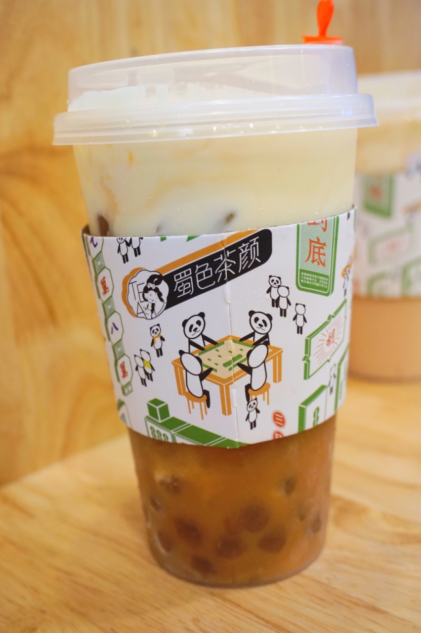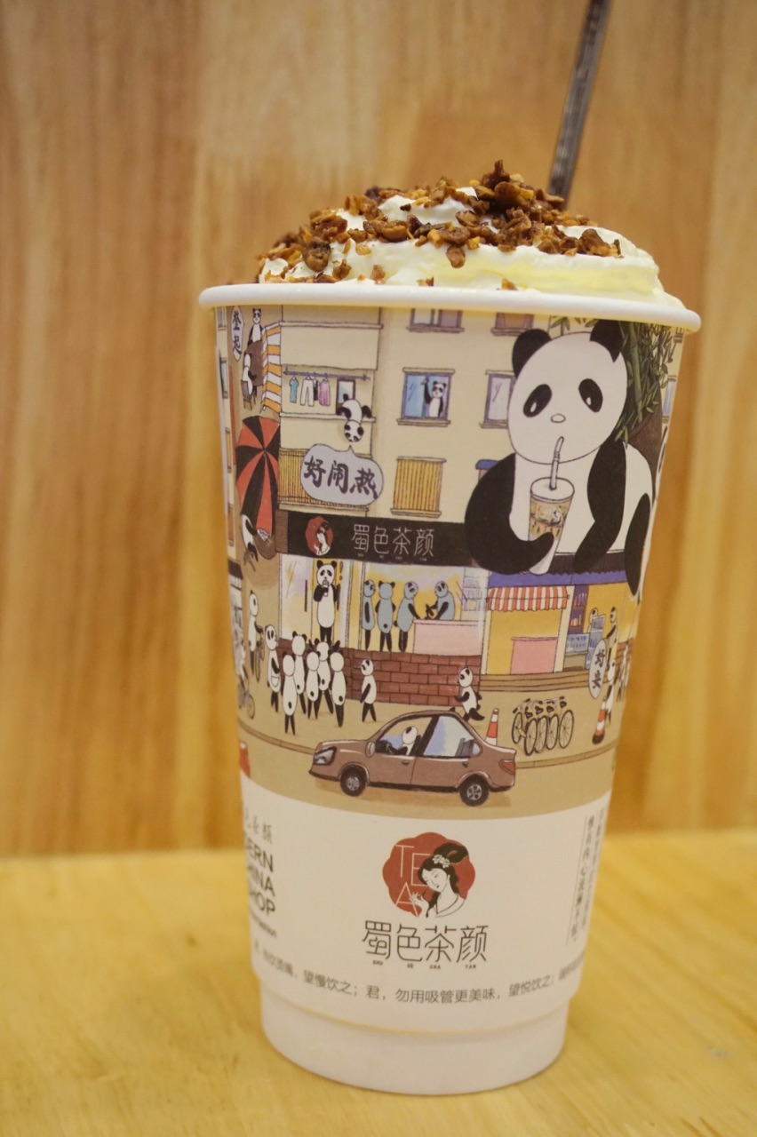 蜀他家的东西不仅材料好,而且口味也比较有特色。奶茶都用的雀巢全脂牛奶,斯里兰卡红茶,高山绿茶,安溪乌龙茶,奶油用得安佳。 我先点了一个我们都很感兴趣的【三大炮】18,满满的花生冰沙,冰沙很细腻,每一口都能吃到花生碎,本来以为三大炮里面会有糍粑但其实没有,上面的一些浓郁的红糖就成为了点睛之笔,太好吃了! 【冰淇淋奶盖】18,也是他家打红圈圈的推荐款,红茶打底,上面加了奶盖和香草冰淇淋,一般不是雀巢就是八喜。冰淇淋和奶盖混合咸甜的味道很喜欢,后来冰淇淋和奶盖再和红茶混合喝起来又是另外一种风味,和外面的那种植物奶油的做的奶盖就是不一样。那些喝到最后奶盖完完整整的剩下了,这里的奶盖就是完完全全的融于红茶之中了。但唯一不喜欢的是珍珠,确实不喜欢这种东西,早知道有我宁愿不要,免得影响我喝水。 【蝶恋生花】15,和【蔓越莓奶盖】18,都各尝了一口,蔓越莓的酸甜也蛮好喝的,蝶恋生花就稍微淡了一些。 他家价格不贵,最贵的水也就22了,确实很良心呢,而且有位置可以坐,还可以坐着休息蹭蹭空调。