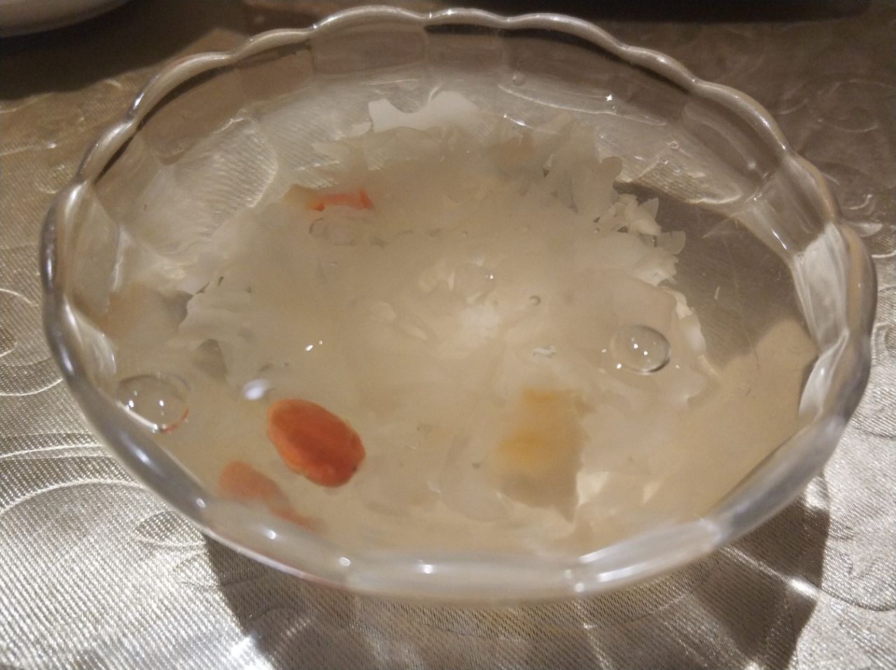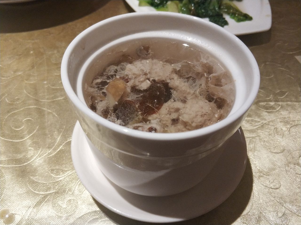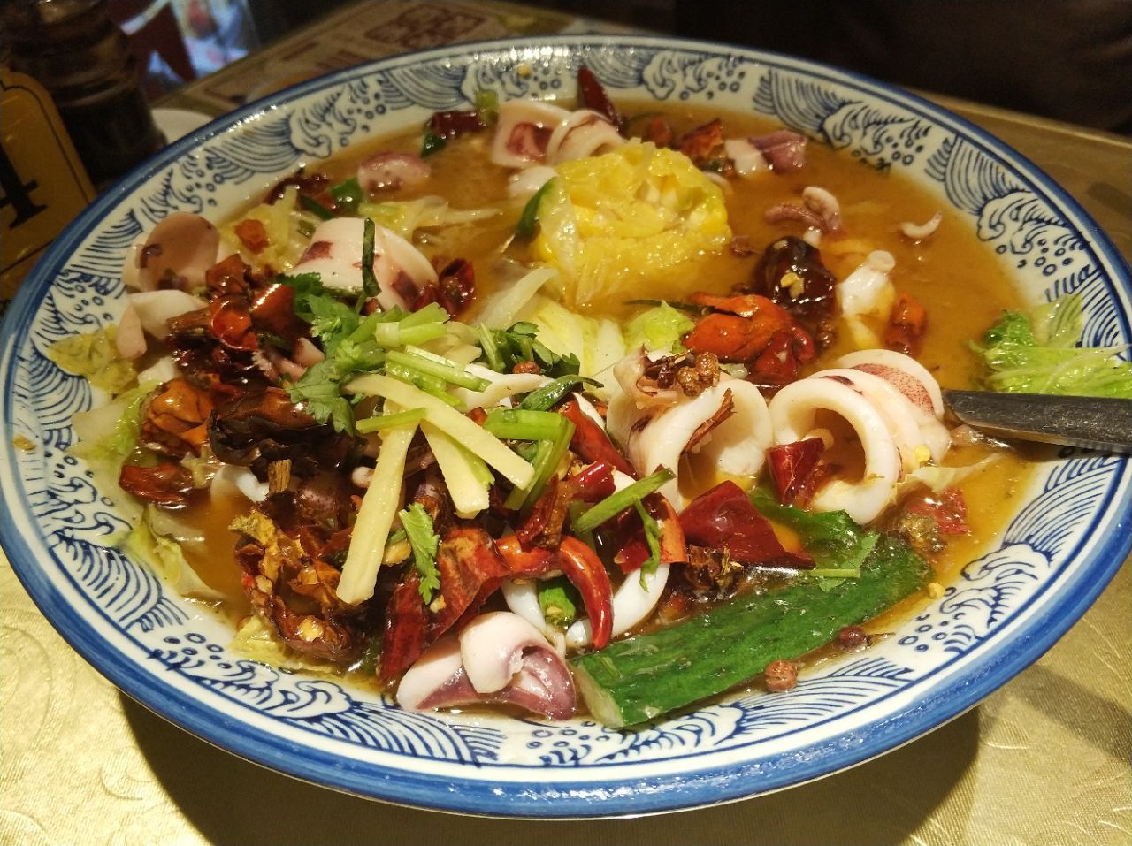 感觉又发现了一个聚餐好去处。 这家餐厅的就餐环境挺不错的,店有三层,其中第三层都是包厢,包厢的环境也还不错。 主营闽菜,都做得还蛮好吃的,团购的两人餐性价比很高了。 水煮小管很新鲜,里面还放了玉米和白菜,还有黄瓜。不知道为啥,吃着白菜总觉着有蟹肉的味道哎,好神奇。 卤面一份真是好大,这个卤面不同于我们平常吃的卤面,它的汤有点点甜甜的沙茶的味道,也还挺好吃的。 金线莲汤比较清补吧,也是能降火气的,里面有很多肉泥,不错喝哦。 最后上的甜汤刚刚好,因为小管有点点辣来着。 前菜里的黄瓜也很好吃,就是有点辣。 服务态度还不错。