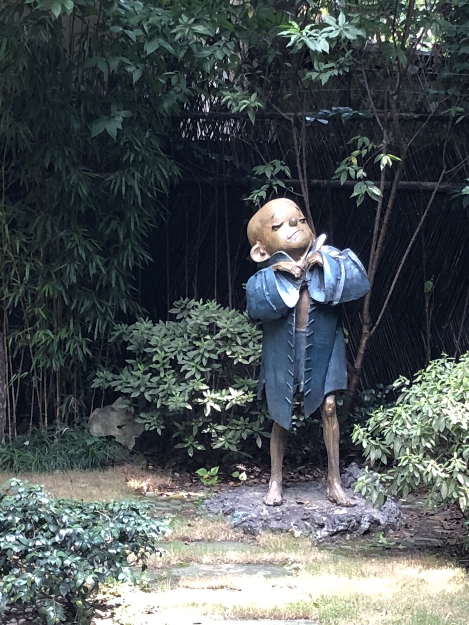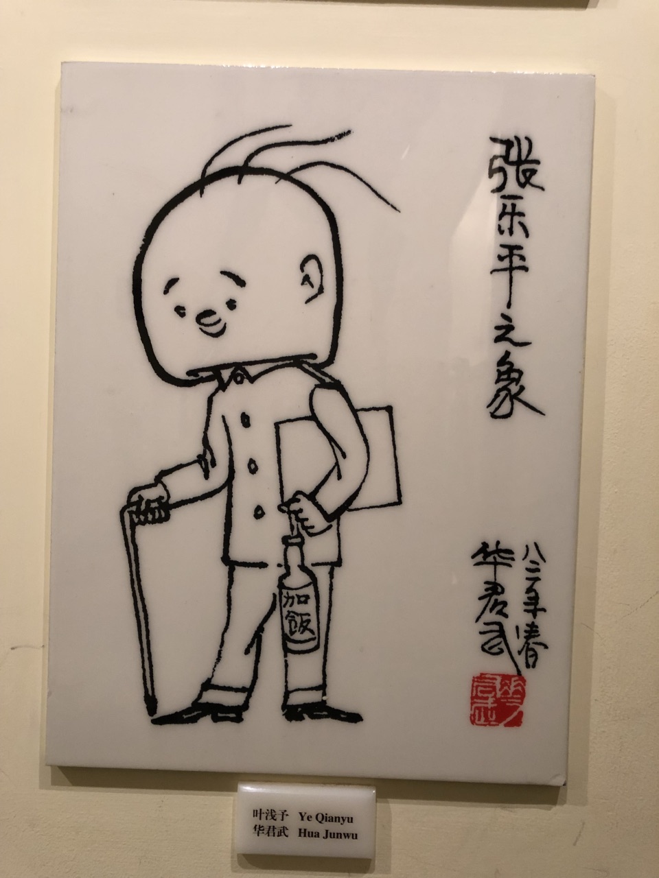 大热天的下午骑共享单车过去的,五原路是条小马路,原以为没啥人,但到了现场仍有游客前来。换鞋套入内。门口可自助盖纪念戳留念。 弄口进来,一路是三毛画作墙。室内展厅有上下二层,展品琳琅满目。较别致的倒觉得是张乐平老爷爷的朋友来画他,十分生动。 一圈走下来,大概半个小时。认真看,就没底了。