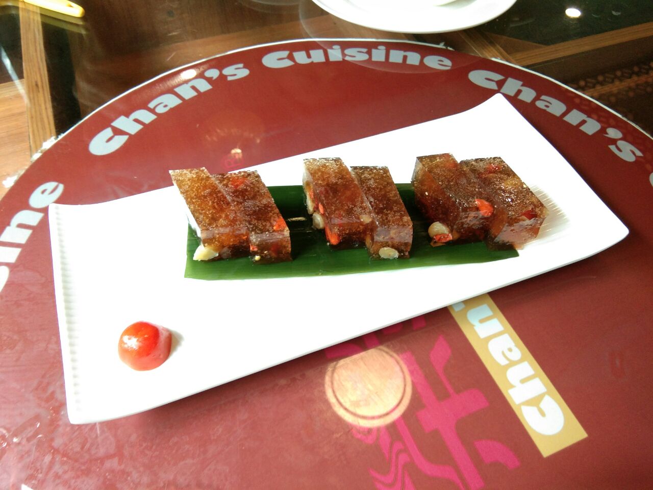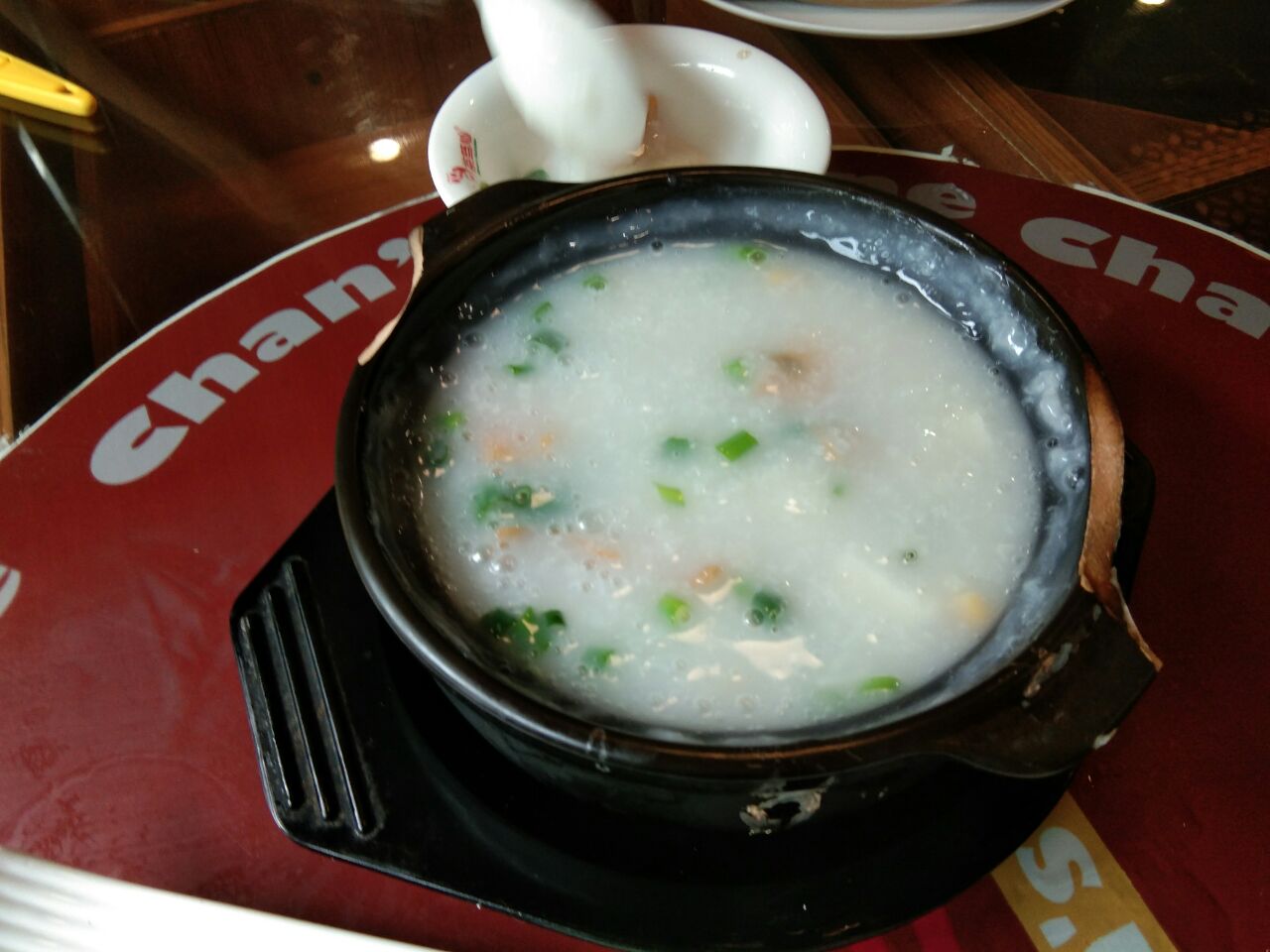 “茶笃灿”粤式茶楼――就在酒店楼下,方便!曾经标榜有粤剧表演文化特色,可惜没看到。价格也比其它店偏贵,幸亏打6.8折,碟头也大。首次品尝酸梅糕(酸酸甜甜挺美味),萝卜糕,淮山百合玉米粥,味道都不错!都是大点13.8元,打折后结账34元!(茶位3元)