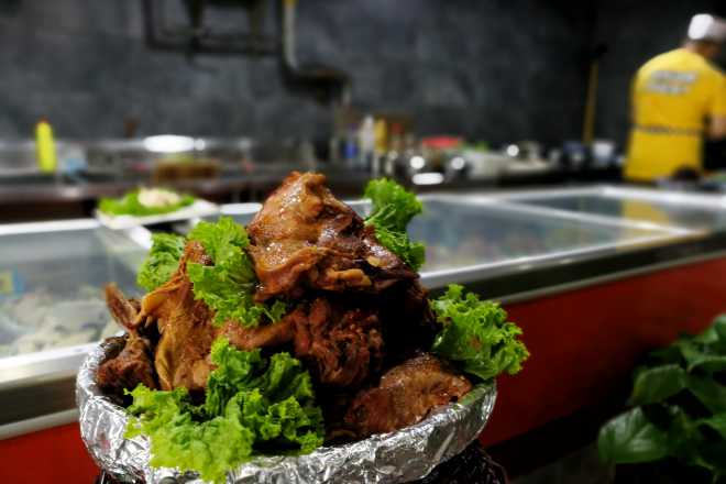 莱阳产梨,我们出差去时过了季节,没法品尝了。还好,菜不错。这里靠近烟台、青岛,上菜少不了海鲜莱阳产梨,我们出差去时过了季节,没法品尝了。这里靠近烟台、青岛,上菜少不了海鲜。山东鲁菜的特色也极具,尤其主食,很难有米饭,让我这个南方人不大习惯。还好,菜不错。