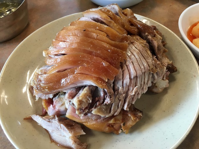 猪蹄的确很赞啊。只是最小份的猪蹄两个人也还是吃不掉。腌的很美味,觉得一家餐厅就一个主打美食就会做的很用心,除了猪蹄,海鲜饼也是超级好吃的。只是配菜就无能接受啊,生大蒜瓣,生的肩头辣椒,生洋葱,生韭菜,太重口味了,要吃猪蹄,必须两个人饿着肚子去吃,要么就三个人去点一份小份的足够啦。吃好后虽然好饱,但韩国的哈根达斯好公道啊。一大罐一斤装的只要50多rmb。