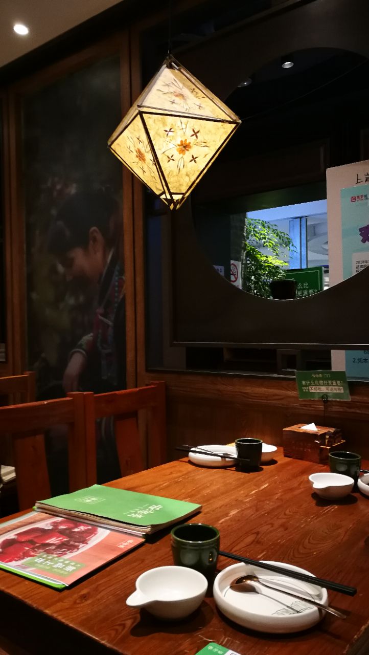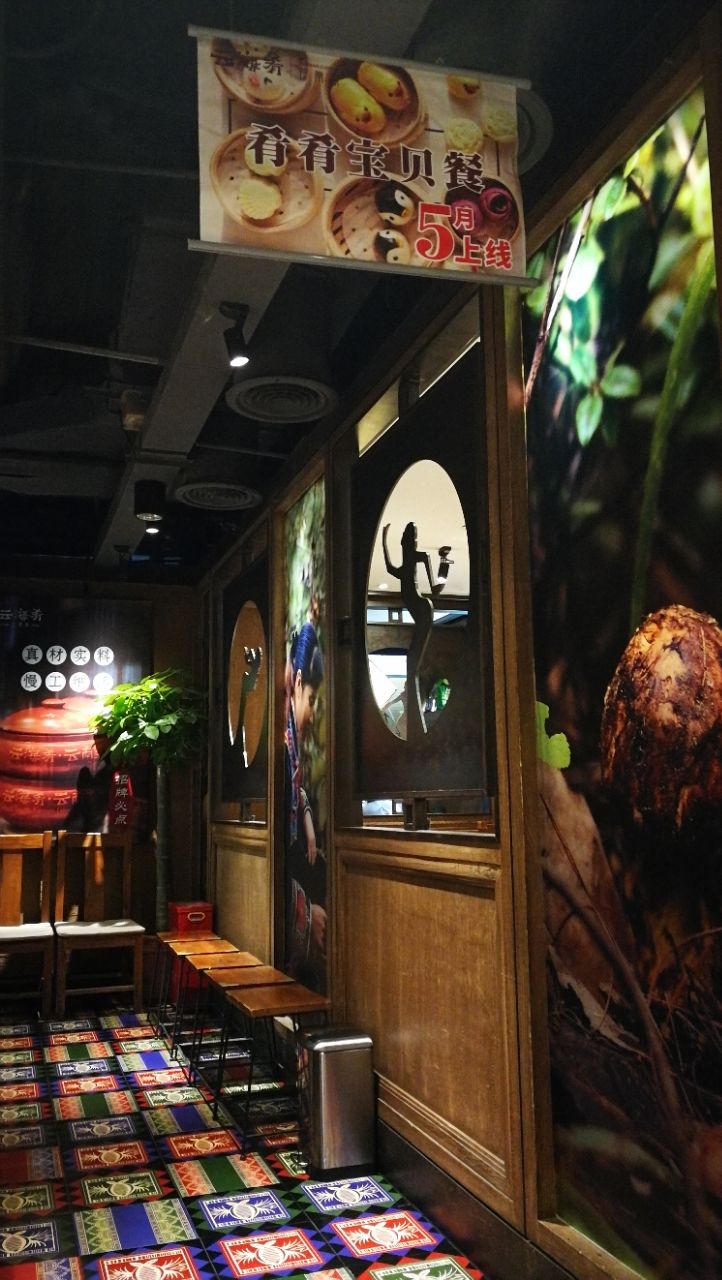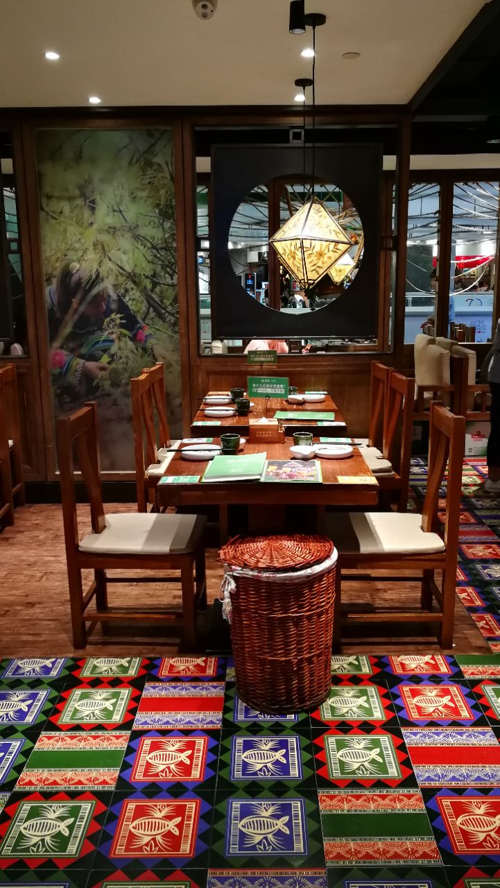 最初两次都是招待合作伙伴一起来的,发现环境不错,自己和家人就又来了几次。中午美罗城所有的餐饮都要来的早,最迟不能晚于11点半,否则就是排长队的节奏。来得早可以自由挑选位子,所以试了几个不同的房间。自己来的时候才有空仔细观察,不用光忙着商务接待,像这趟就发现地板的拼色艳丽,极有云南风味。菜的选择多样,上菜速度很快,茉莉花炒鸡蛋和普洱茶香酥虾滋味诱人,领导觉得葱香老奶洋芋细滑润泽,特别喜欢。唯一的麻烦在于一个人来的话不太好点菜
