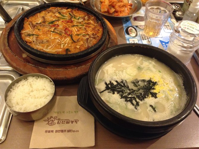 神仙雪浓汤在首尔遍地都是连锁店,就近吃就好了,品质都是有标准的。弘大店的生意特别好。不过神仙雪浓汤实物没有传说中的什么味道鲜美,香味浓郁!相反,个人觉得很寡淡,没有任何特别的味道,还得自己加盐,泡饭吃还蛮腻的。