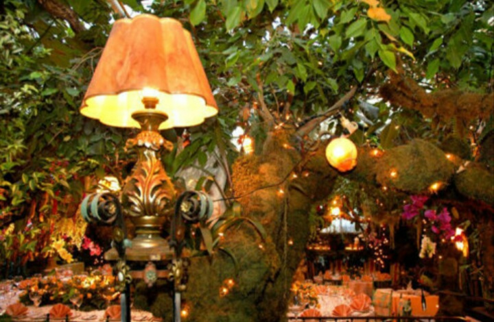 位于尼斯市附近,餐厅里的花比桌子还要多,装潢十分特别,独一无二、只此一家。几乎每一寸地方都布满了鲜花——包括玫瑰、兰花、常春藤、剑兰等等。餐厅里植物多得需要眯起眼睛去找标牌。鲜花的数量多到奢华致极。且每张桌子的中间都会用鲜花装饰,走廊用异国树种进行装饰,而且你还能在植物丛中找到一些食肉动物。餐馆四处还散放着许多古风十足的小饰物。还有隔着蕨类的大块玻璃做成瀑布,作为装饰。最棒的就是,用餐者可以伸手直接采摘天花板上悬挂下来的葡萄和圣女果食用。极为推荐給大家可以一来。