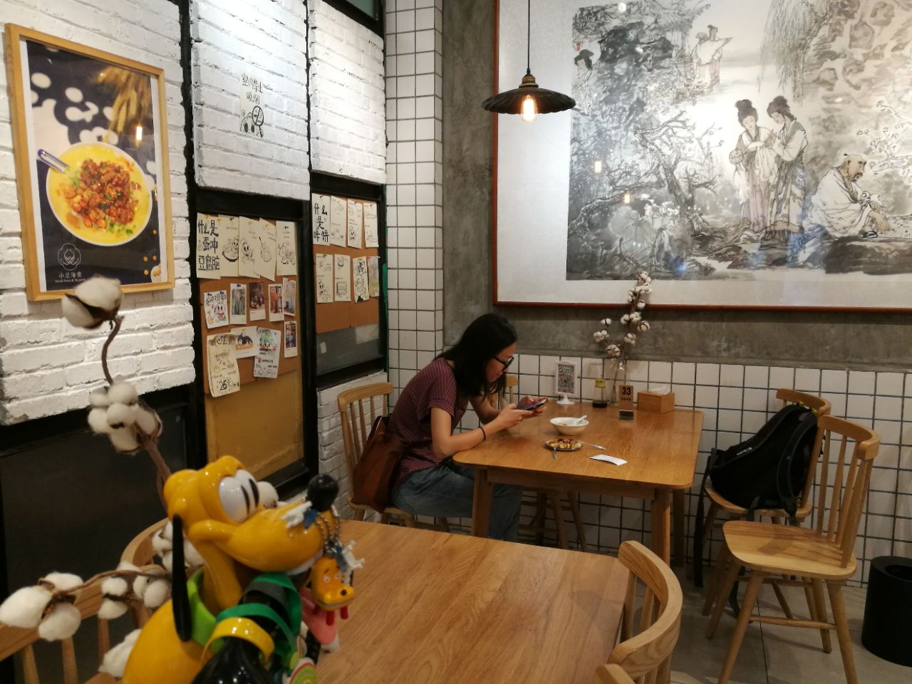去乐山之前在网上看到一篇文章有推荐这家店,决定去尝尝。住的地方离得不远,早上走过来也就几分钟,到的时候差不多9点40左右。远远看去装修比较新,整个店堂不大,给人感觉很明亮,吃饭的人也较多。点的牛肉豆腐脑和冰醉豆花,冰醉豆花还可以加热,结果小弟的冰醉豆花吃完我的牛肉豆腐脑都还不上。后来问服务员说还在做,差不多等了20多分钟才上来。不过里面的料挺丰富的,牛肉有几坨用的应该是边角料,辣椒油很香,还是很好吃的,比牛华豆腐脑好吃多了。来乐山这家店是可以尝试的,就是服务员的培训要加强。