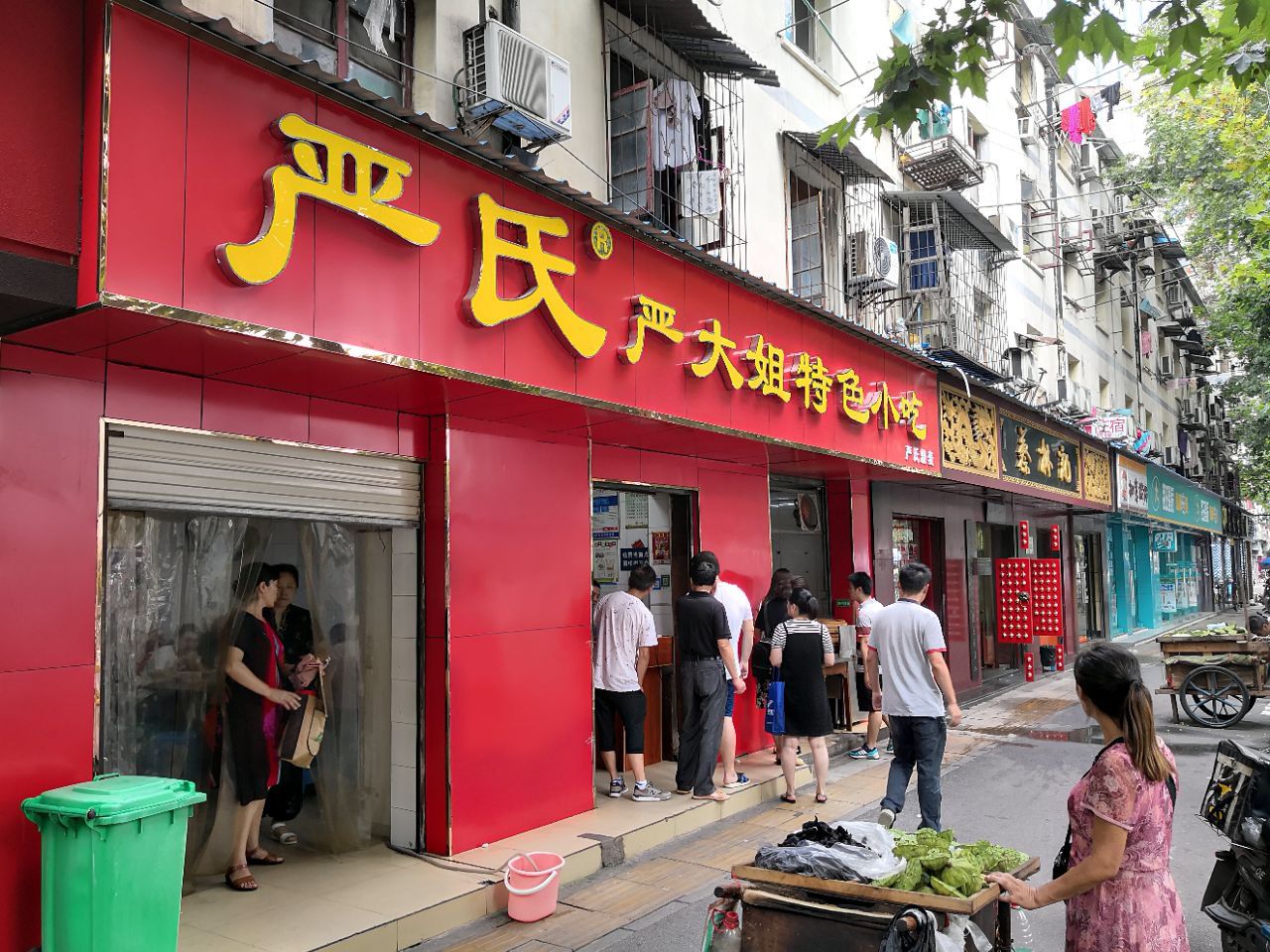 严大姐特色小吃,在汉口利济北路附近。最有名的当属烧麦,六块钱可以买到四个烧麦,足够一个人过早呀!重油烧麦,是武汉独有的,特点是重油、胡椒味重、口感浓郁、个头大扎实,陪一碗免费的花红茶解腻。武汉的重油烧麦以严氏最为著名,像严老幺、德润福,都是响当当的,而严大姐亦是其中之一。