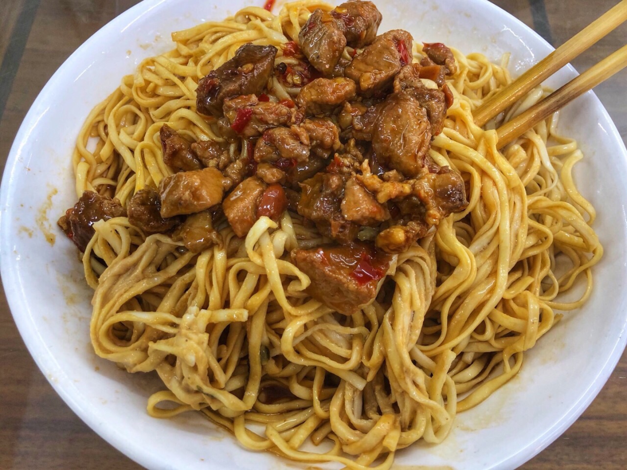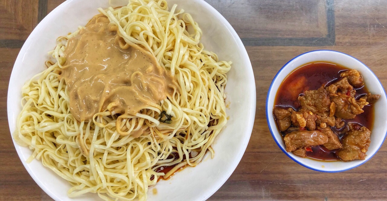 听闻开了几十年 在居民区里的面馆 本来想去附近的德兴馆 本着就近原则 选了它 规模还挺大的 周末晚市客流较少 老式的吊扇 老式的桌椅 服务员坐着休息 有些在吃晚饭 品种还是很多的 点心盖浇饭面食都有 夏季有冷面上市 可以微信买单 「素浇汤面」¥10 清汤挂面的浮着油面筋、香菇和葱花 讲真 光吃素浇还蛮入味的 甜口的表示喜欢 面条白皙偏柔软 对得起这份价格吧 「辣肉拌面」¥22 浇头和冷面分开的 冷面的调料需要自己拌匀 麻酱和花生酱略浓厚,醋放多了~辣肉空口吃也不赖 加入面条多一味辣度 两份面食都很普通 也没吃完 一个过于寡淡 一个过于浓厚