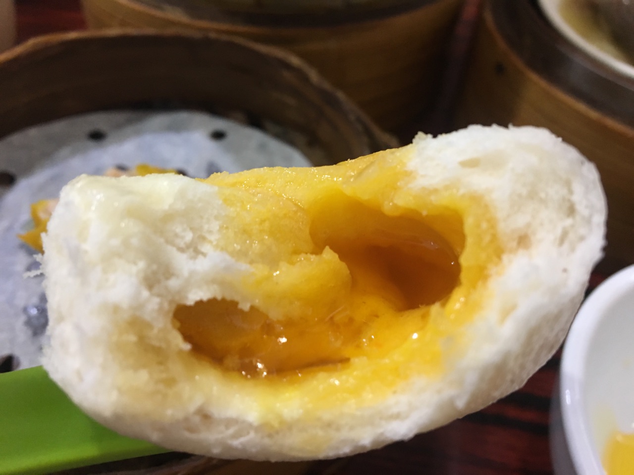 看到网上的推荐,来到新兴食家,这是坚尼地城附近很有名的一家港式点心店。店面不大,里面是挤满了人,也有人在排队,排队的进程是很缓慢的,一直到我们进去坐下以后才发现其实有很大的改善空间。它并不是像别的餐厅一样,坐下点餐,单子上的点心也并不是现点现蒸,而是厨房里蒸好了什么,一并端出来摆到餐厅的最外边,开始我还以为这里是外卖的窗口,但其实并不是。而是你进餐厅坐下以后想要吃什么再自己挤过人群去外面拿,相当于是自取,小心别被小笼给烫着了。小笼也是一笼一笼重叠着的,你得一笼一笼的打开,才知道里面有一些什么东西,有自己喜欢的再取出来,然后再挤过人群回到自己的座位上,这无形当中增加了很多的用餐时间,怪不得排队这么慢。虽然说在管理方式上有很大的改进空间,但说实话它的味道还是不错的,尤其是最为推荐的流沙包,的确是我所吃过的流沙包当中最为流沙的。