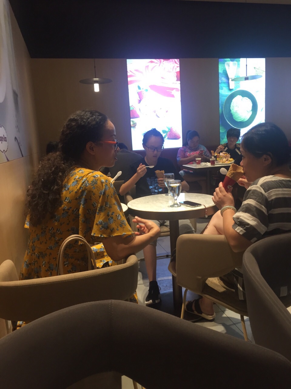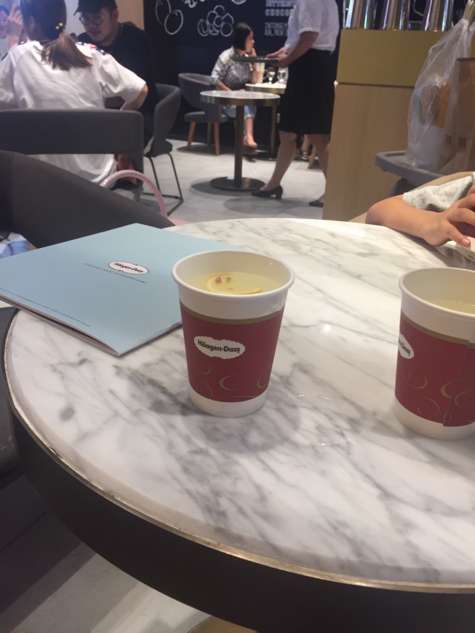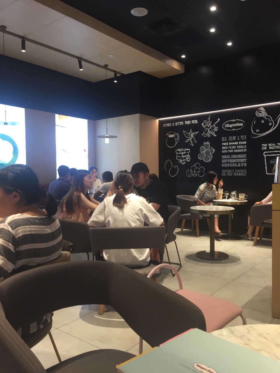 连锁的哈根达斯冰淇淋,友人的小天使生日,为了让小天使开心,就安排去吃冰淇淋蛋糕了。吃完饭,特意在哈根达斯买了一个冰淇淋蛋糕(后来知道冰淇淋蛋糕得提早打电话订,不然现货不一定会有。而且可以团购,团购的价格优惠,现场买没有优惠)。 哈根达斯堂吃有位子的!还有服务员在招呼着!