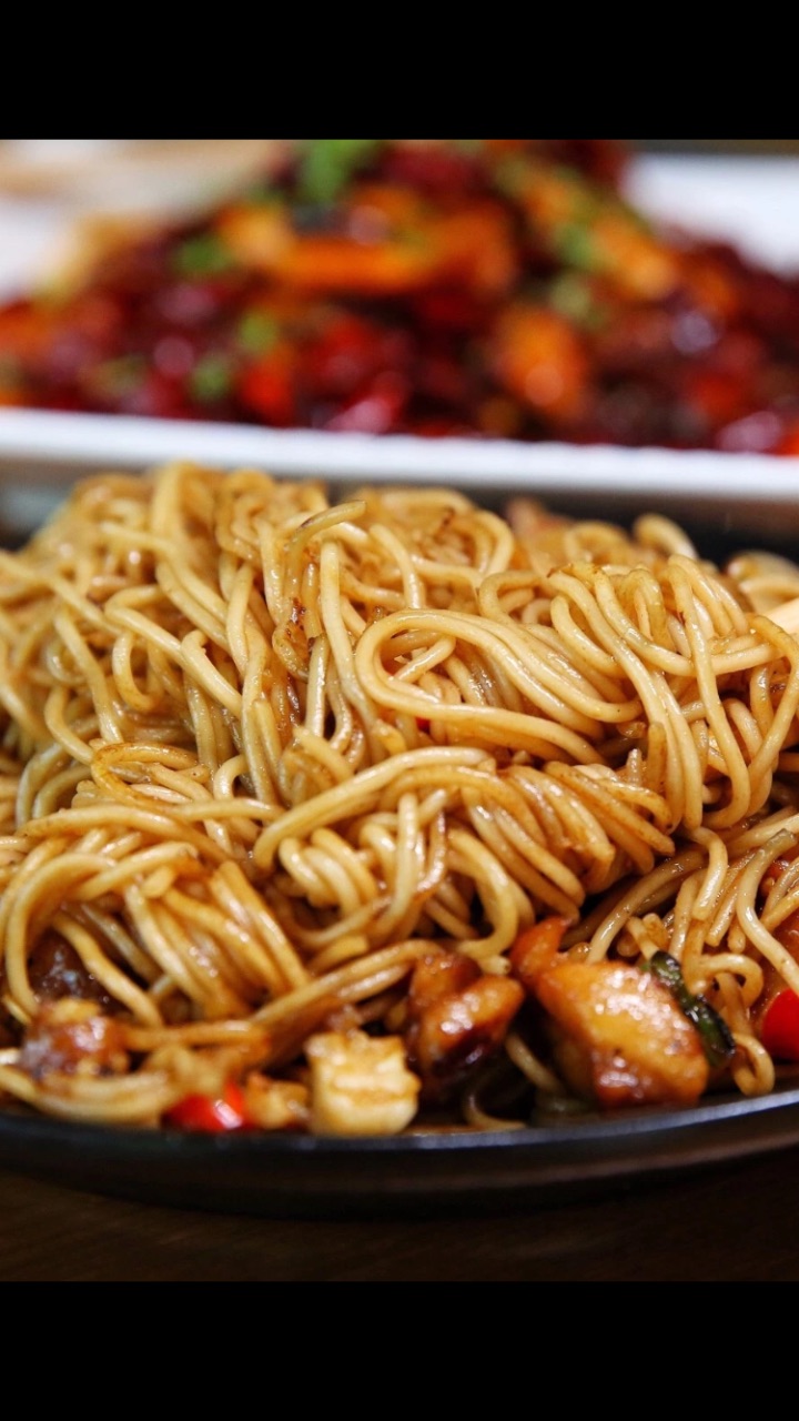 【爆辣小公鸡炒面】,注意名字中爆辣二字,没有在和你开玩笑。如果你抱着“它应该是一份普通的辣炒面”这样的心态去吃,那肯定会收获一份惊喜(微笑),或是get了街头艺人的喷火技能... 炒面的卖相很有食欲,闻着就特别香喷喷了,很有烟火气的那种!吃到中途就算辣到鼻涕眼泪一起流,辣到胸腔内火烧火燎,但依旧放不下筷子,总想再多吃几口。【壹号馋嘴蛙】一份里有足足四斤牛蛙,每只都选择中等大小。这样既保证了较大的个头,可以吃到肉厚厚的大腿,也让肉质嫩嫩的不会太老。【豉椒牛蛙】里浓浓的豉汁裹满了每一块儿蛙肉。如果觉得馋嘴蛙太辣,这道牛蛙菜就是你的首选啦,只到微微辣的程度~