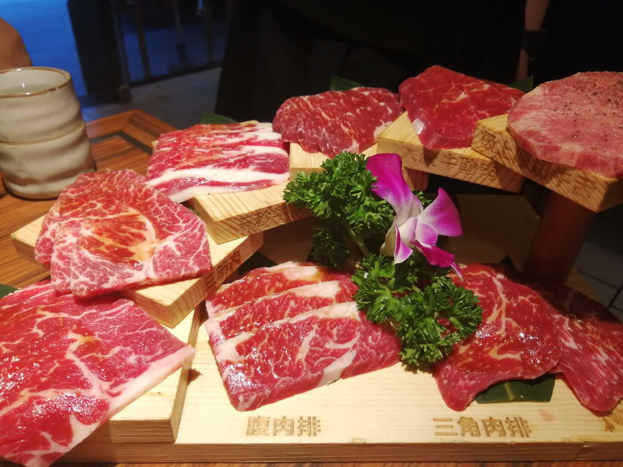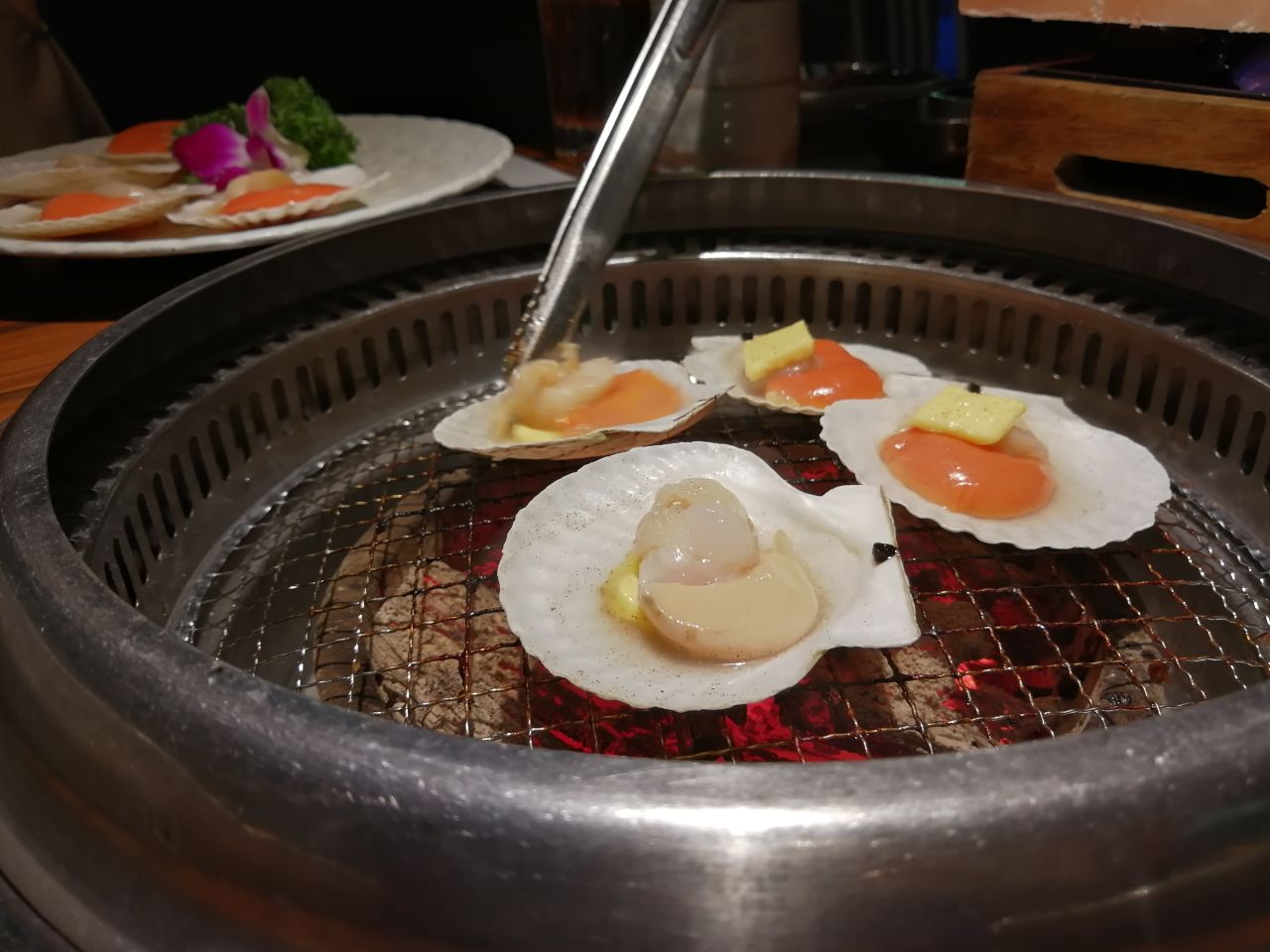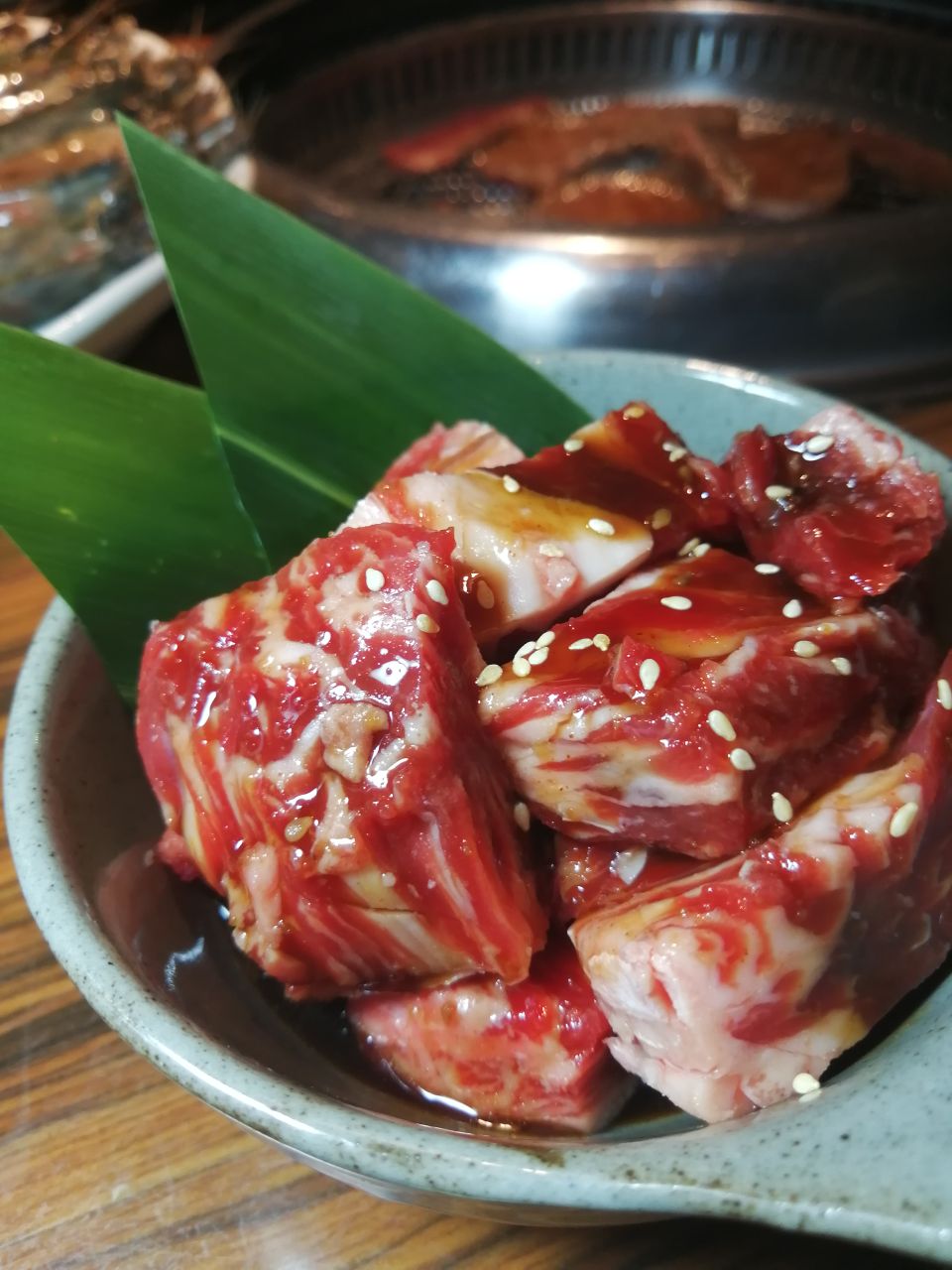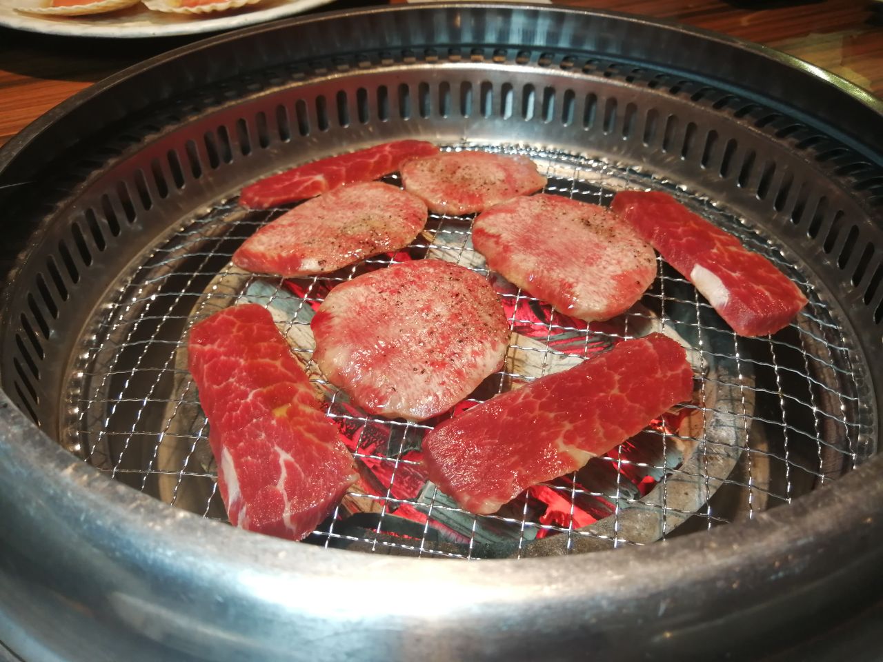 因为丸子是8月生日的原因,整整一个8月被定为生日月,自然要好好庆祝! 以牛为主题的放题首选大牛焱烧,三百几的报价酒水和牛虎虾等任食,约上同为食肉兽的F,感觉要把老板吃哭的节奏哈哈。 出品推荐壶渍牛肋肉,横隔膜,五秒牛烧肉,葱盛牛舌,北海道牛油带子,虎虾。 看到我们鸡手鸭脚的,店内的MM就很热心过来帮忙烤肉,全程享受定点VIP服务啊,还不断提醒我们可以加点,五星给你啦! 店内的抽风系统不错,吃完身上不会一股油烟味,唯一缺点就是去洗手间远了点。