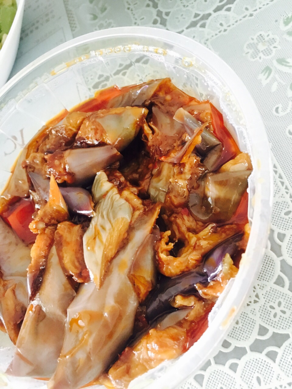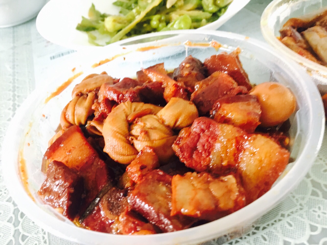 看上去像是办宴席的地方,菜式也比较中规中矩,因此平常吃饭不太会去。不过网上叫外卖的时候发现套餐还不错,就叫了一次,小碗的菜分量也挺可以,味道也还不错。可以作为午餐的选择之一呢。外婆红烧肉里边有豆皮节还有鹌鹑蛋,辣椒炒蛋也是很实在很有味。最爱酸辣土豆丝,炒的很棒。放眼看去,放辣椒的菜还蛮多的呢~