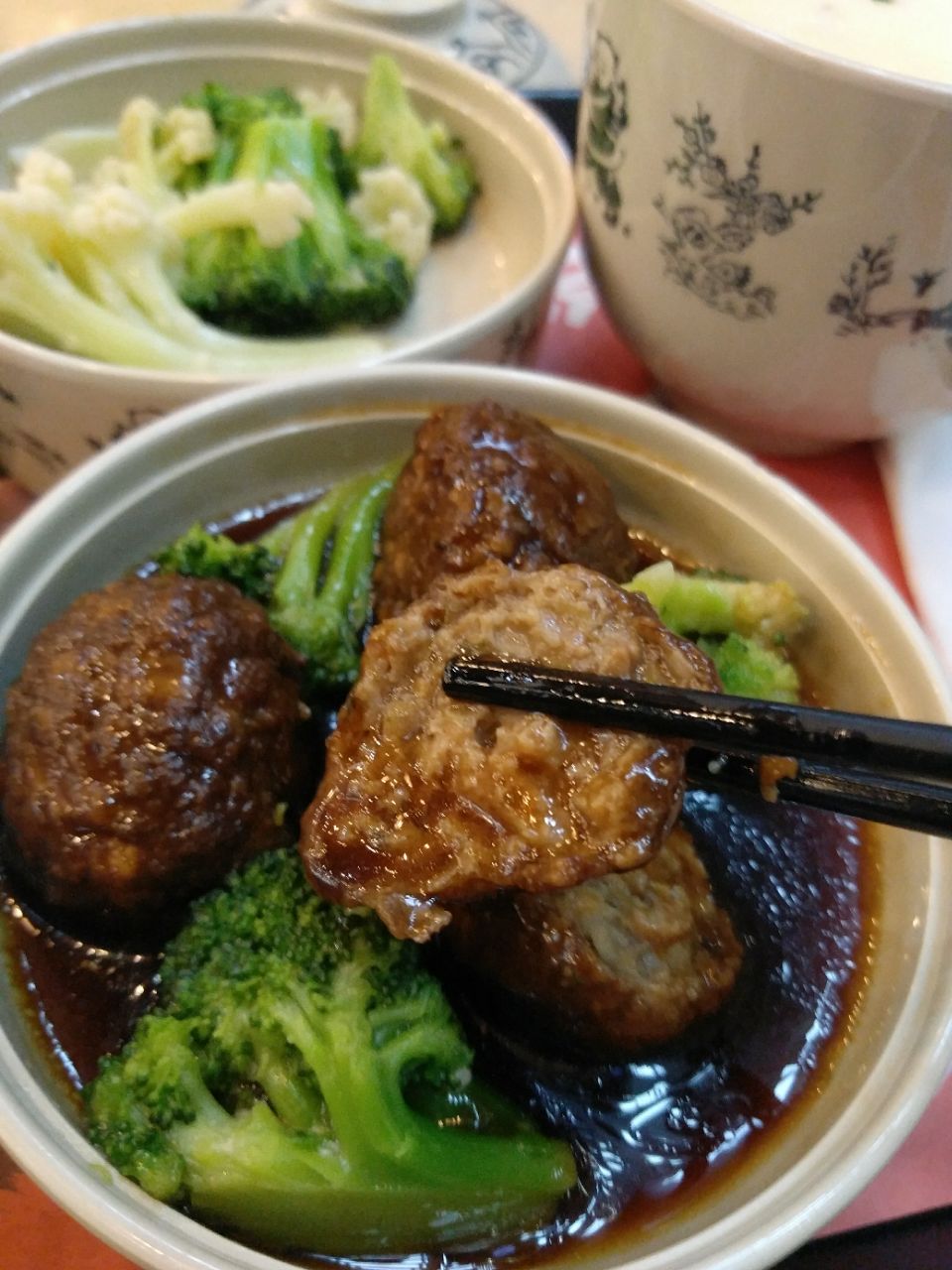 老娘舅,一听这个名字就很亲切,开在龙之梦绝对是生意兴隆了,中午人超多,价格实惠东西也不错哦。 鱼肉狮子头 传统狮子头里加入了鱼肉,口感上更软糯一点,个人觉得还是不错的。而且酱汁也没有一切餐厅那么咸。 梅干菜扣肉 招牌了,很入味,梅干菜汁水很多哦,拌着饭超好吃,五花肉虽然偏瘦了,不过还是蛮好吃的。 配菜感觉很不错,银鱼蒸蛋很滑嫩,时蔬基本上都是水煮的比较少油健康,给个赞! 很适合工作餐,而且他家甜品很好吃,尤其是红豆沙哦,也难怪有很多老人带孩子来吃,他家还有儿童套餐是菜饭呢,实在是不好意思点,下次看来也的尝试一下