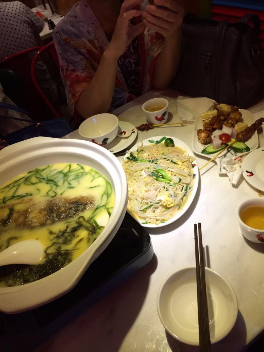 芽笼餐厅,新加坡餐厅,整体蛮经济实惠的。因为刚从新加坡回来,所以还是蛮有兴趣的。还是按照自己平时的口味点了海南鸡饭,肉骨茶。其他家人要了油条菠萝鸡和烤串类的。招牌田鸡粥这次没有吃,大家都说吃不下了,那么就留到下次再来吃吧。