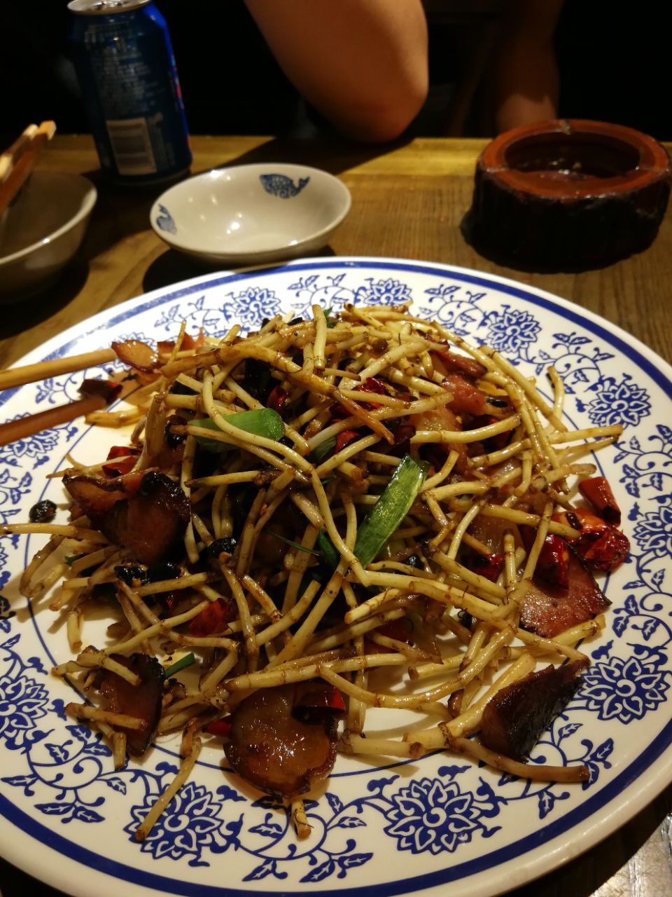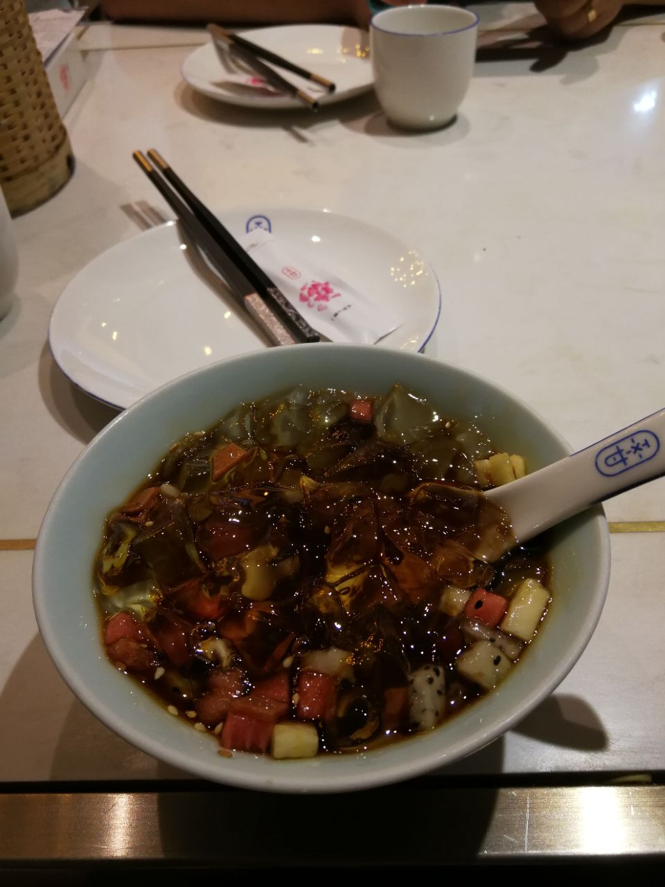 来成都两天了,还没吃过一餐饱饭。中午逛完宽窄巷子,在宽巷子入口处听香吃的午餐。环境很好,很有情趣,菜品比较丰富,当地特色菜基本都有。印象深的一个是冰粉,超赞,里面放的片糖一下子把我带回了童年时代,二三十年没吃过片糖了啊。儿子很喜欢那个肥肠,软嫩可口,肉香四溢。麻婆豆腐味道还可以,不过不大和我们口味。其他还有泡菜,抄手,凉面什么的都很地道。终于饱餐一顿啊。