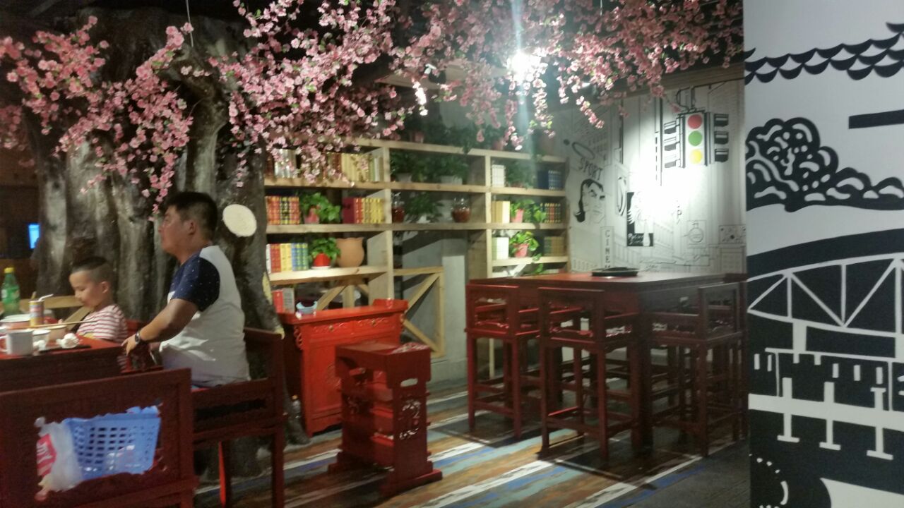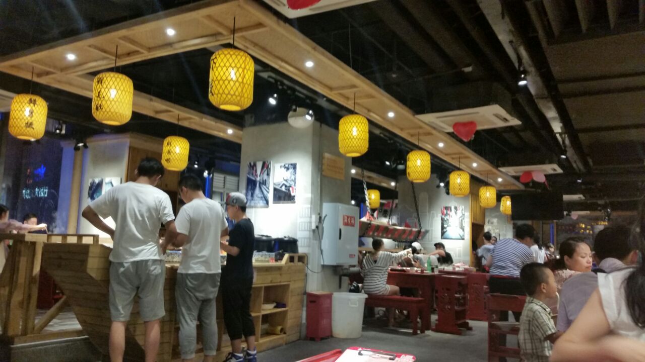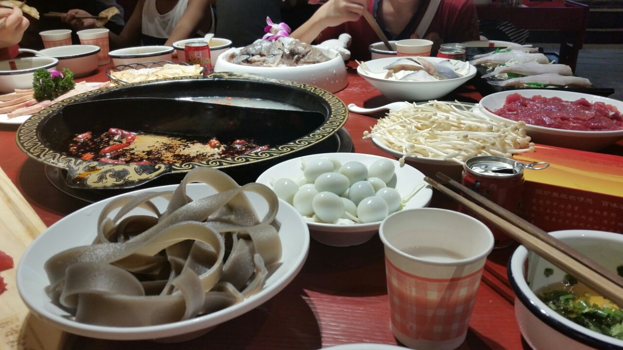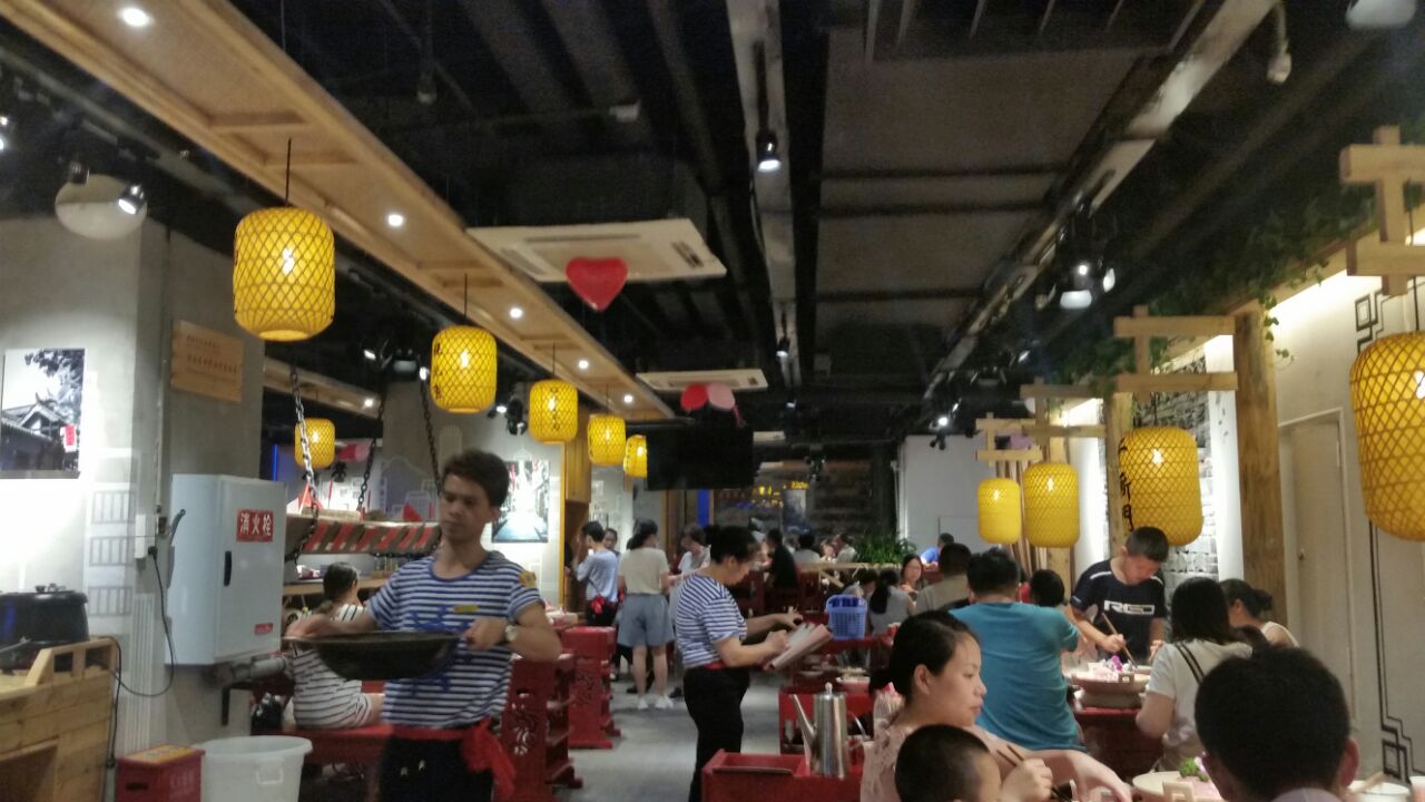 就在解放碑附近,往五四路方向走3分钟就到。装修环境很不错,古色古香,又有巴渝特色。可点红汤火锅,鸳鸯火锅,清汤火锅。每种火锅锅底任选。嫩牛肉和肥牛肉好好吃。鲳鱼耗儿鱼一直是娃儿最爱。小吃诸如飞饼、南瓜饼之类味道都很好,总之,我们两家人都吃得很满意。有一家人点了拉面,就有服务员给他们作了拉面表演。真因为味道很赞,我们晚上8点半去吃时还要排队。我们一行人中有人迟到,10点才来,我们刚刚吃完,然后他独自一人吃了一份火锅。一直吃到11点过,我看了一下,这都快到半夜了,还是这么多人,这生意真是好得不要不要的。