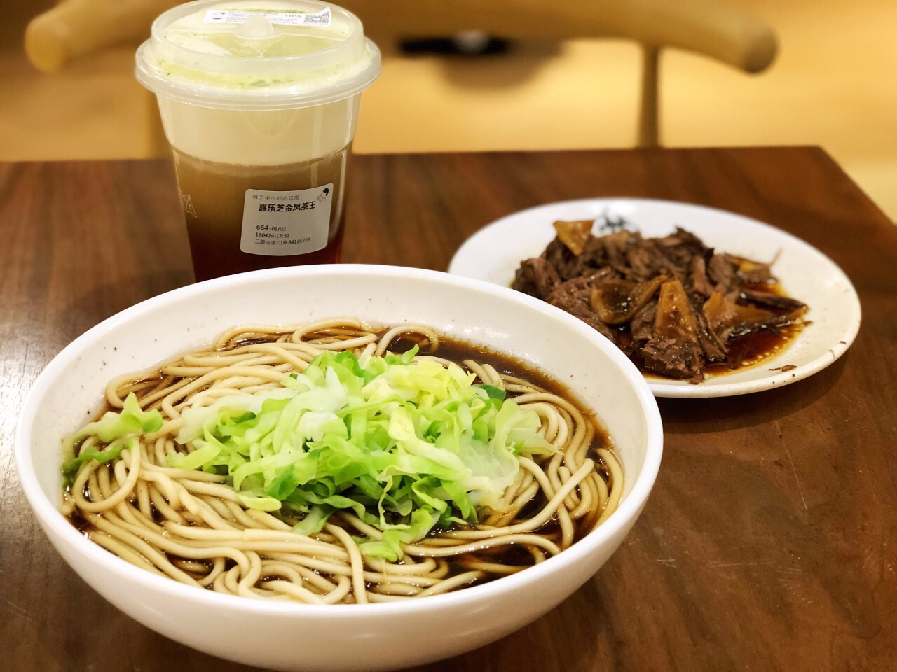 不错的小店,在三里屯区域,不过还真不太好找,好不容易才看到不错的小店,在三里屯区域,不过还真不太好找,好不容易才看到。店内很温馨明亮,服务员都很有礼貌,跟着大流点餐,一份招牌老汤面,二两酱牛肉,落座后,餐好了服务员会给端上来,虽然只是很简单的食物,但是感觉很温暖。