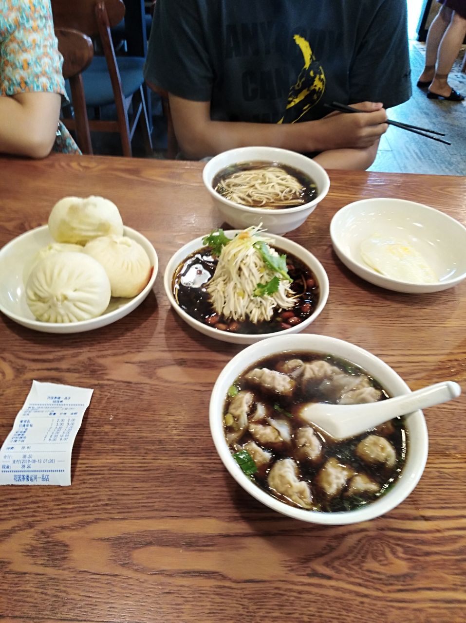 早早的去找这家店,只是附近在修路,开车去路不太方便,停车到倒还行,点了虾仔馄饨,浓浓的酱油味加胡椒,味道很好,价格也便宜,三丁,豆腐皮,青菜三种包子只能说没期盼的那样惊艳,阳春面中规中矩,儿子说还行,小烫干丝就一般般啦!总体价格亲民,本地人都有在吃,估计点干丝都是外地人!!