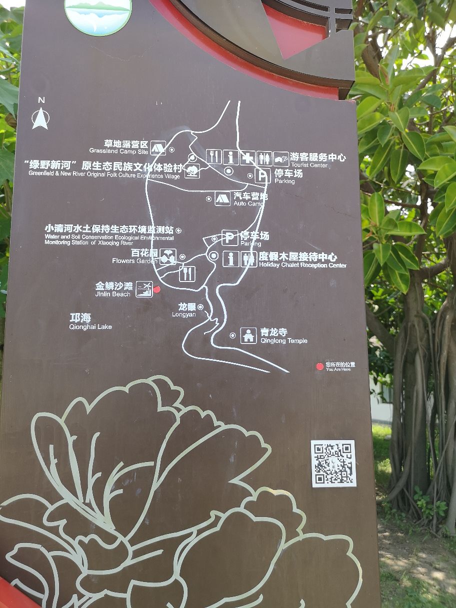 这里听说原来就有一片沙滩,但是不太大,后来公园治理,又专门购买了白沙填充,形成现在的样子,也取了现在的名字,青龙寺就在沙滩背后的山上,以前这里和青龙寺都一起叫青龙寺了,现在很多游客都是奔金鳞沙滩去了的,不多的游客是去爬山参观青龙寺的。
