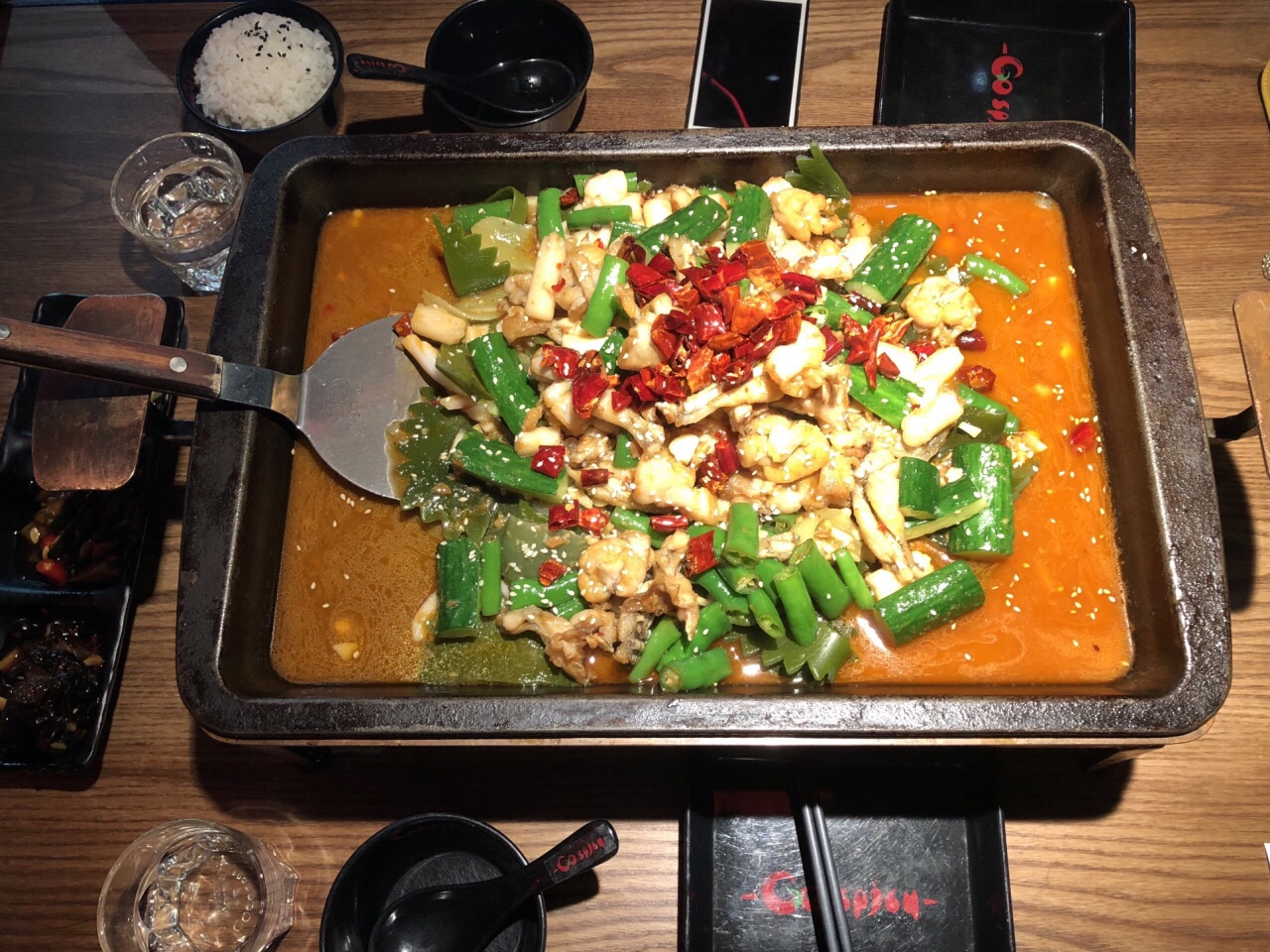 ▲坐标: GO辣 湾悦城外围 A栋写字楼一楼店面 旁边是冷面馆 我每天在窗户都能看到这家店还蛮好奇就是啦~ 抛弃食堂来改善一下午餐 ▲环境:现代设计感十足 空调也很足 满意 ▲推荐:招牌牛蛙拼盘 里面出来肥肥的牛蛙 还有洋葱 黄瓜 年糕 这三种配菜 我和闺蜜一起 但是我不是很饿 于是只选了一份单人份的牛蛙 记住真的很大份 很夸张的那种 我觉得3个人来也可以的 我另外加了配菜 海带片和莴笋片 还有一碗米饭 ▲服务:热情