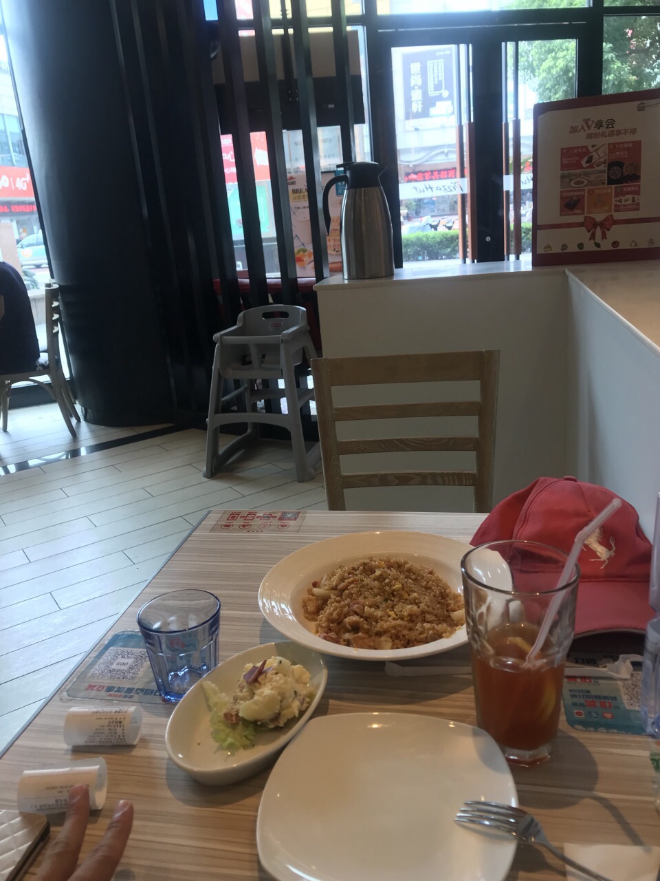 南桥这家必胜客并没有贴在主干道上,而是要走进去一点。店面大门的面积看上去不大,不过有两层楼,服务质量还是不错的,小年轻几乎都不懂的如何用中信卡的9分权益但是都很耐心。照烧鸡肉饭套餐的沙拉给的量还是蛮足的,不过鸡肉炒的不算太熟。