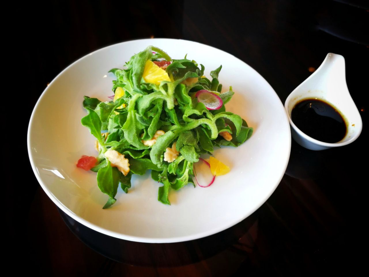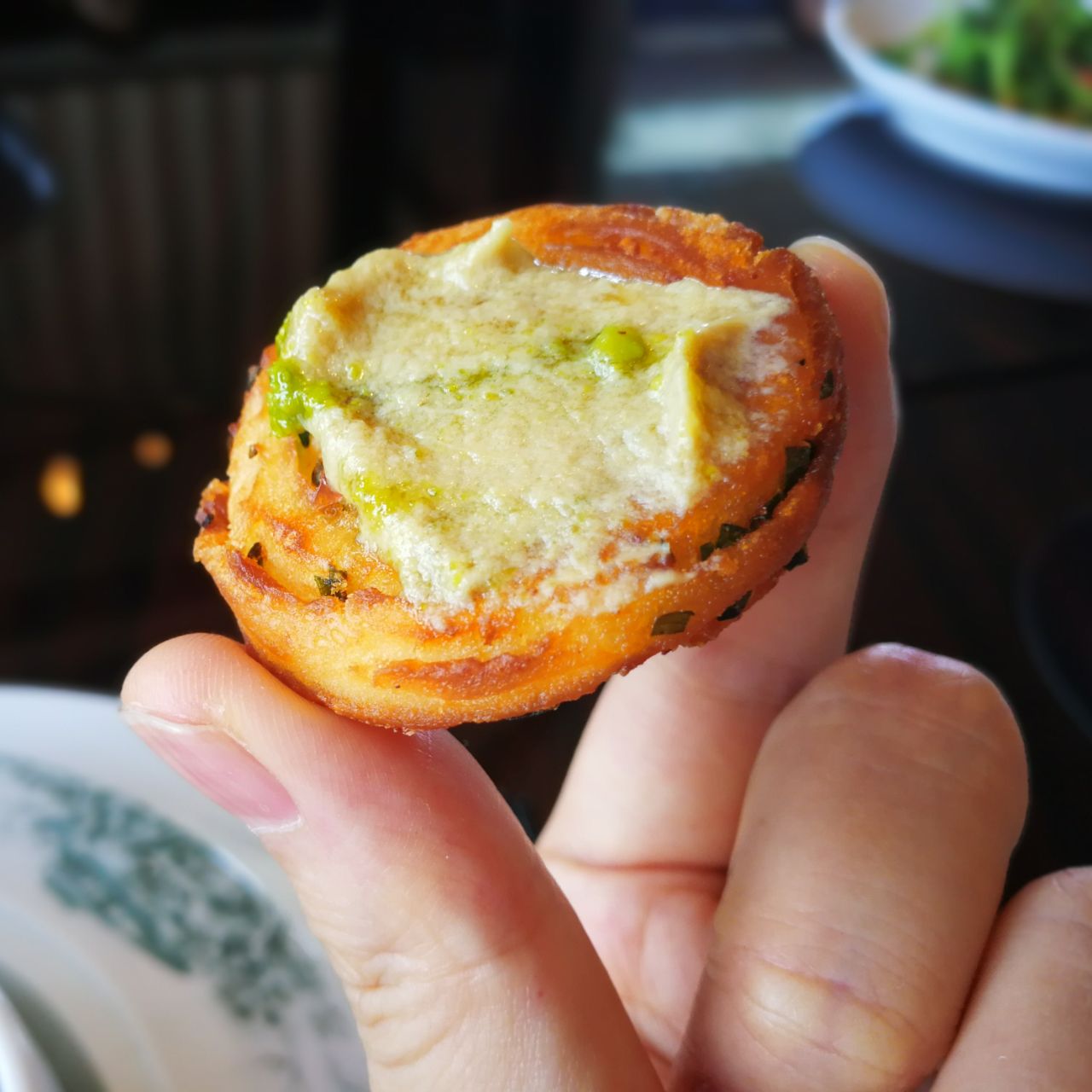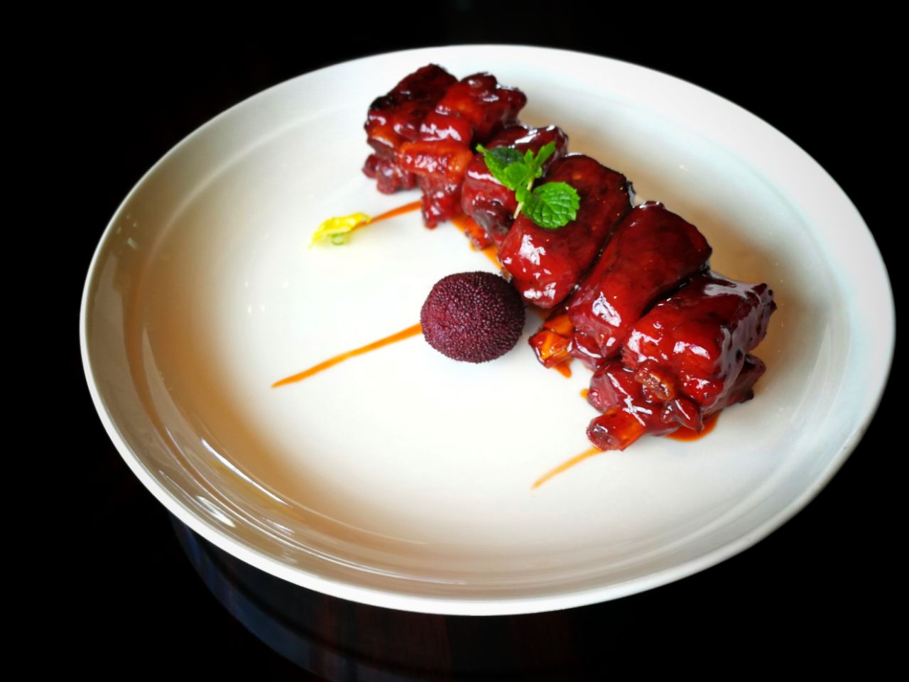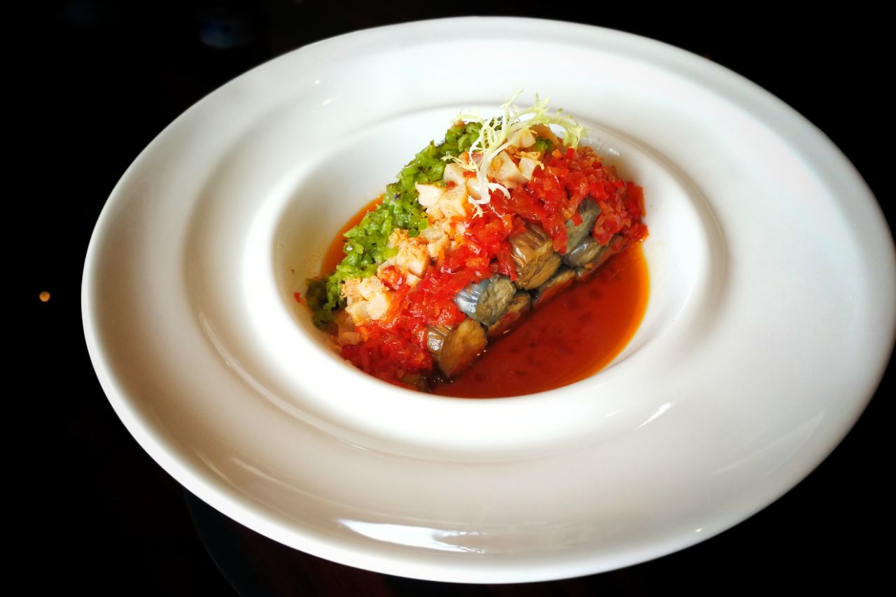 >>>冷菜六碟 |仙居杨梅排骨^ 一眼就看到了一盘红通通的菜, 肋排的旁边,还放着颗杨梅。 原来这肋排是和杨梅一起烧制的。 不过我觉得吃起来偏甜了点。 |松茸素烧鹅^ 不看菜名真的不知道, 这素烧鹅还是松茸版的啊~ 愚钝如我,只看到了表面类似黑松露酱的东东。 一圈转下来,我夹到的那片已经没有任何点缀了。 |元贝烧椒茄子^ 摞得整整齐齐的茄子, 还有摞得整整齐齐的元贝丁和青红椒。 茄子这个创新的吃法,倒也挺不错。 |鹅肝酱葱油饼^ 接地气的葱油饼牵手高大上的鹅肝酱, 怎么忽然直接就成了网红美食了? 你还别说,天晓得为什么它俩那么配! 好吃打call~ |油醋冰草色拉^ 冰草里面加了水萝卜、橙肉、核桃肉, 多了点活跃的色彩和口感层次。 配上低卡的油醋汁,最是清爽解腻。 |椒麻竹蛏王^ 这个菜我好像没有吃到诶,暂且不做评论。 >>>汤 |红菇螺片炖老鸭^ 每人一份,球形的容器, 装了一碗好汤。 一块,两块,三块……我的那份里面居然有四五块鸭肉! 怎么吃得下呀?最后只得把鲜美的汤汁喝了,把菌菇吃了。 >>>热菜 |XO酱藕带炒鲍片^ 简单的小炒菜因为时令的食材而出挑。 藕带鲜嫩多汁,鲍片爽脆弹牙, 真是道时令好菜! |胜瓜鱼腐煮膏蟹^ 禁渔期一过,大膏蟹上桌! 掀开蟹壳,这膏还不止一点点! 膏多肉多,这螃蟹配点醋更好吃。 至于鱼腐,乍一看我以为油面筋呢, 度娘说它源于广东罗定,用鲮鱼肉为原料制成, 真是涨知识了。 |金汤茭白浸鱼柳^ 又是一道时令菜, 茭白丝、鱼丝浸润在金汤中,鲜美滑嫩。 |牛肝菌炒斑件^ 牛肝菌和鱼片的组合, 这道菜貌似就是传说中的“山珍海味”啊! |蒜片牛柳粒^ 牛柳粒很大块,炖的极其酥烂,几近入口即化了。 调味我觉得刚刚好,不会把牛肉本身的味道盖住。 蒜片是澜亭自己烤的,别的菜点缀的一些水果干片, 也都是自己加工烤制,可以放心的吃。 |石锅海鲜豆腐^ 里面的海鲜挺多,虾、带子等等, 品质都很不错。 另外还放了甜豆。 难得吃到好吃的石锅海鲜豆腐,好评!