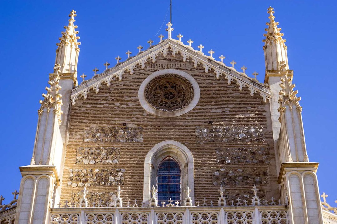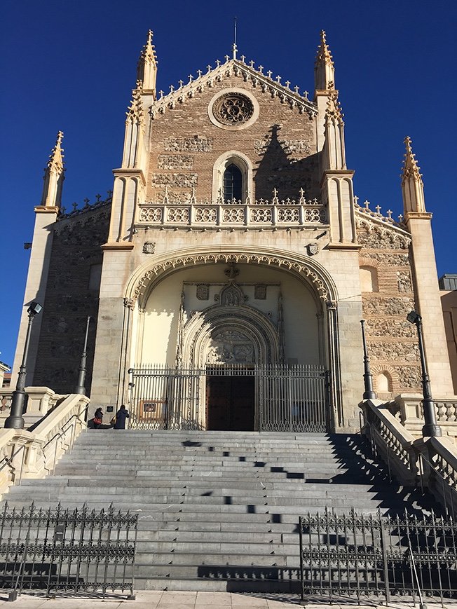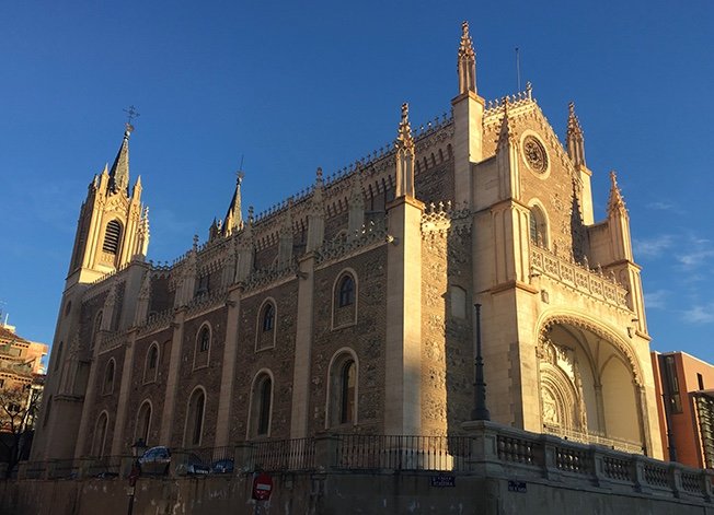 王家圣耶罗米教堂教堂呈哥特式风格,外墙装饰华丽教堂,是马德里最重要的教堂之一王家圣耶罗米教堂教堂呈哥特式风格,外墙装饰华丽教堂,是马德里最重要的教堂之一。国王胡安.卡洛斯一世1975年的加冕礼就在这个教堂举行。