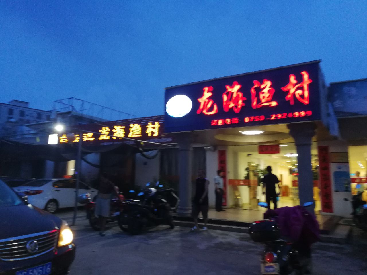 龙海渔村是东海岛东简镇上较早的一家专吃海鲜的酒家,这个月南海禁渔结束,重新开捕,大量生猛海鲜上市,东海渔村靠近东南码头,每天都有好货,生意很好。酒家大厅很大可以办婚宴,两侧是包房,大大小小十几个,基本客满,海鲜基本都是活的,做法简单,吃的就是原汁原味,价格适中,停车方便。