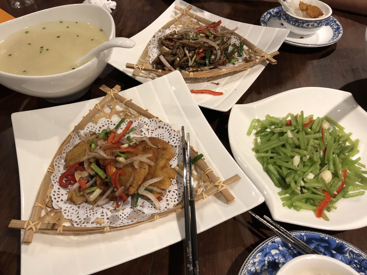 抛弃了自助餐出来觅食,看了点评寻觅而来,土豆饼太赞了,貌似是临安的特色,家家都有,但这家做的最棒,环境也是周围农家乐里最好的,老板娘说是用自家种的小土豆做的,比乒乓球还要小几个号吧。地瓜藤也好吃,连小朋友都说好嫩好脆啊,吃了半碟,还特意交代我吃完了记得点评