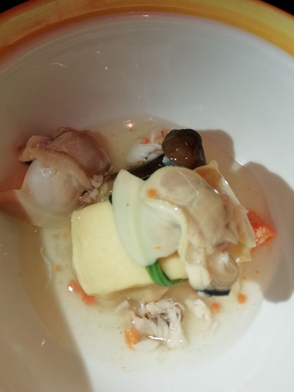 位于外滩浦华酒店内,环境简洁优雅,是典型的日式风格格局。新一季菜单推出,品尝一下。 前菜四道 【鱼子酱海胆鲍鱼】最惊艳一道。采用了西伯利亚鱼子酱搭配海胆、鲍鱼,佐上蟹醋冻。用料十分丰富,但色彩和味道都很层次分明。推荐。 【自制山葵章鱼】新鲜现杀长脚章鱼、搭配现磨山葵及墨鱼脆片。其貌不扬的一道,但是味道从开始生章鱼的鲜美到最后墨鱼片的香脆,中间夹杂着山葵独有的清淡,味道不错。 【海鲜蛋卷筒】飞鱼子、甜虾、鱿鱼、黑鲔鱼泥搭配华夫蛋卷桶,颜值高,味道好,又极富创意,值得推荐的一道。 【平目刺身】严选日本比目鱼搭配橙醋,简洁明快,还食物以本来味道。 蒸、烤、炸类 【野生大文蛤千页豆腐蒸】活斑节虾自制千页豆腐、配花枝浆、佐蟹肉汁。又是一道颜值高味道好的菜。感觉吃出中国古代宫廷风。推荐。 【北海道大干贝】海苔包裹大干贝,趁热吃下,肉质肥厚口感味道都非常好。 【鱼干三兄弟】针鱼、安康鱼、鳗鱼烤制酥脆,搭配美乃滋,无功无过,味道不错。 【炸日本富山湾小白虾】严选日本本州岛东北部富山湾海域独产的小白虾。香酥入口,味道不错。 【西柚冰沙】吃完炸物,寿司之前清口。为什么我觉得超级爽口,味道超赞。 【江户前握寿司】现做现吃。竹荚鱼,黑鲔大腹,黑虎虾,海胆手卷、黑鲔鱼葱花手卷。各有各的味道,每一个都超给力。 【银座玉子烧】重头戏来了,只有较高级日料餐中才会出现的“蛋糕”,味道香鲜甜美,真正的低调奢华有内涵。强烈推荐。 【鳗鱼饭】这个是店家赠送,因为考虑到生食比较多,好贴心。鳗鱼肥美,是我的日料最爱。 【味增汤】味道鲜咸,很适合这里。 【甜品】套餐里是水蜜桃布丁和京都风葛粉任选。前者用料丰富,从小脆饼但弹糯的小珍珠,再到软滑香甜的布丁,非常丰富。后者简单的一碗冰凉葛粉冰凉劲道,沾味道浓郁自带温暖气息的红糖浆,简直是最美收官。别说,这两个还真是比较难取舍。个人偏爱葛粉。 五星级酒店享受一餐丰富美味的日料午餐,398元的套餐价格性价比还是可以的。