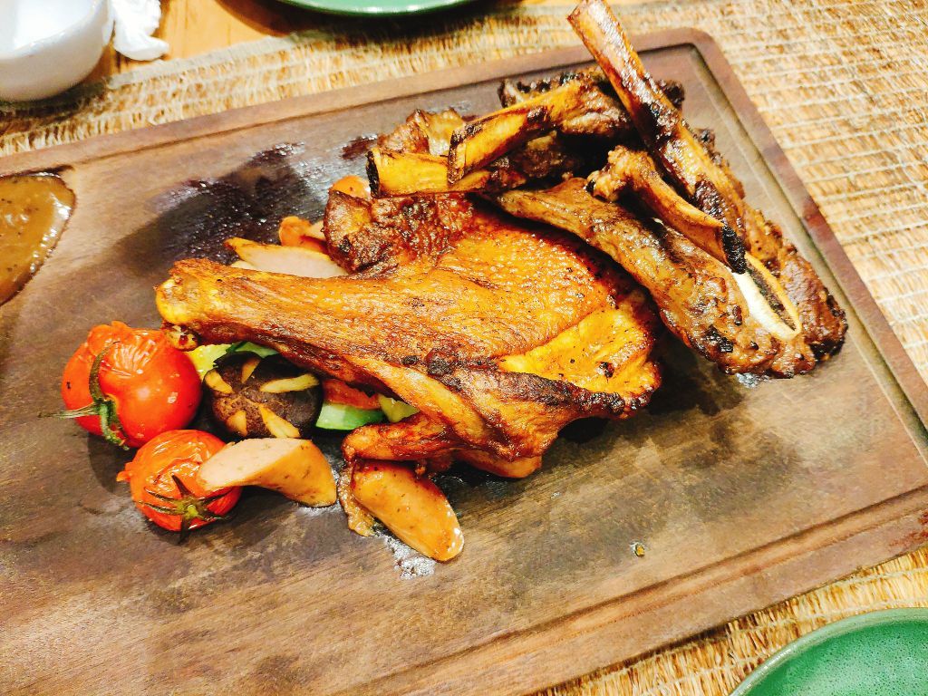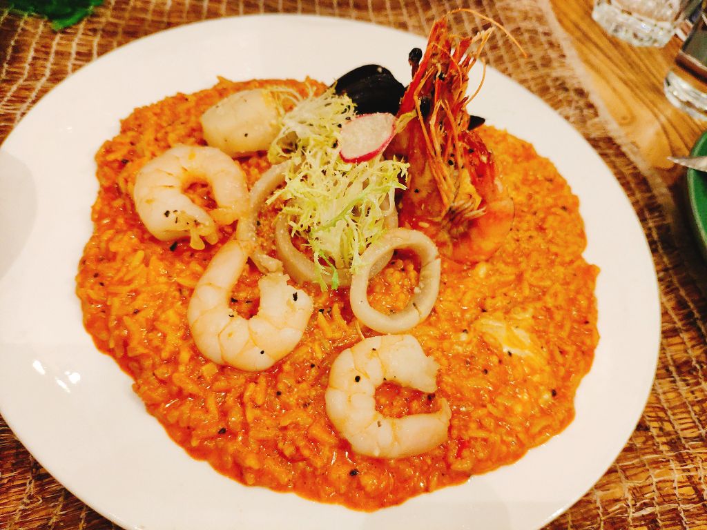 看着是老洋楼改建的,沿着延安路且靠近西湖,但又不是很喧闹的地方,地理位置也算是很不错啦。 有两层楼,店里满满的都是鲜花,让人欢喜!就餐环境就是美。看了下,美女来这次吃饭的居多,花美人也没美(不是夸自己) 餐品方面, 慢烤牛肋骨,烹制的很入味,肉也是8分熟的样子,肉质滑嫩。 巴马臣焗芦笋,现在是芦笋的季节?我不确定,但是这道芦笋很鲜嫩,值得推荐,毕竟我是食肉动物,也忍不住吃了好多。 风暴海鲜饭,里面有虾,个头很大,有点像西班牙饭,很好吃。
